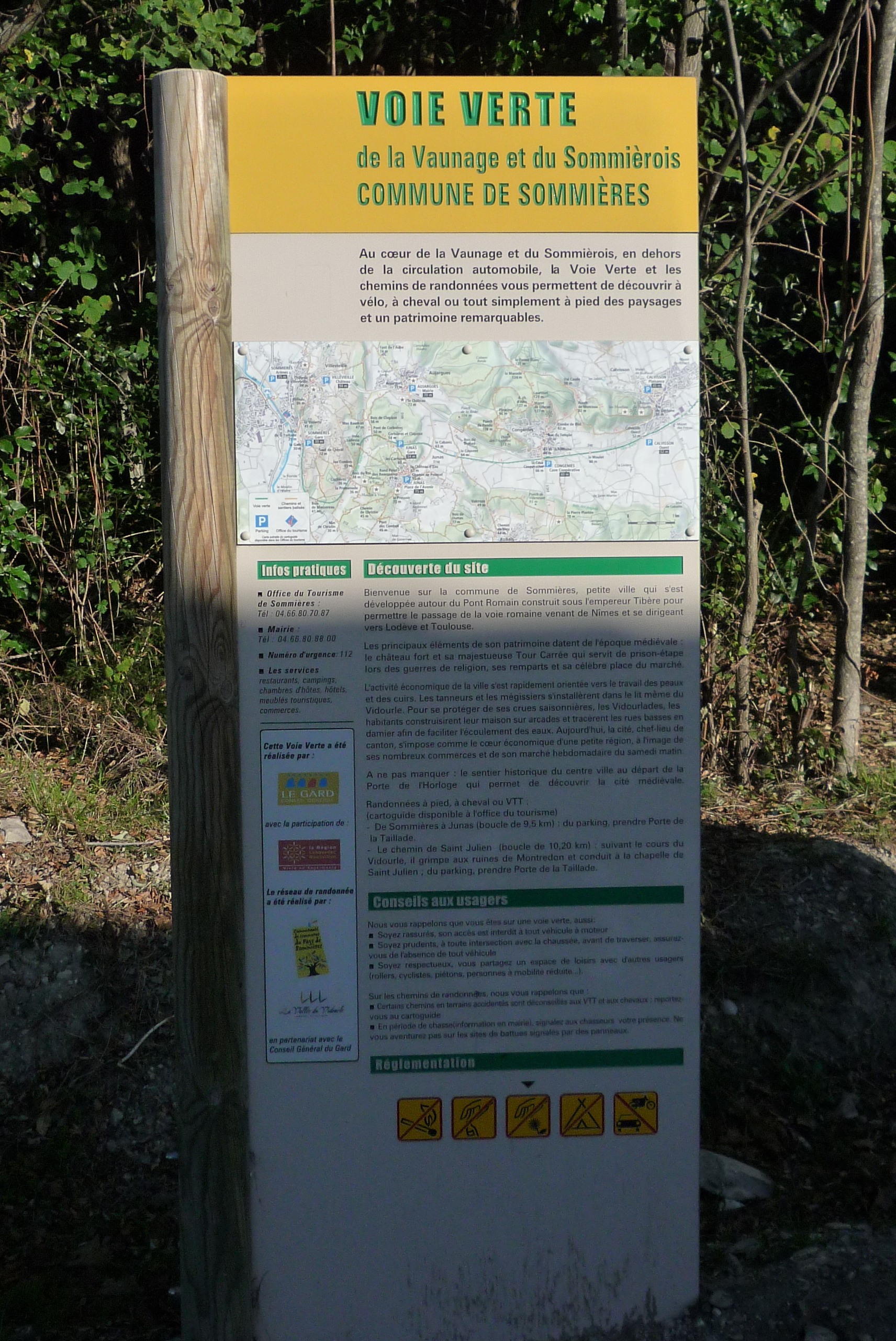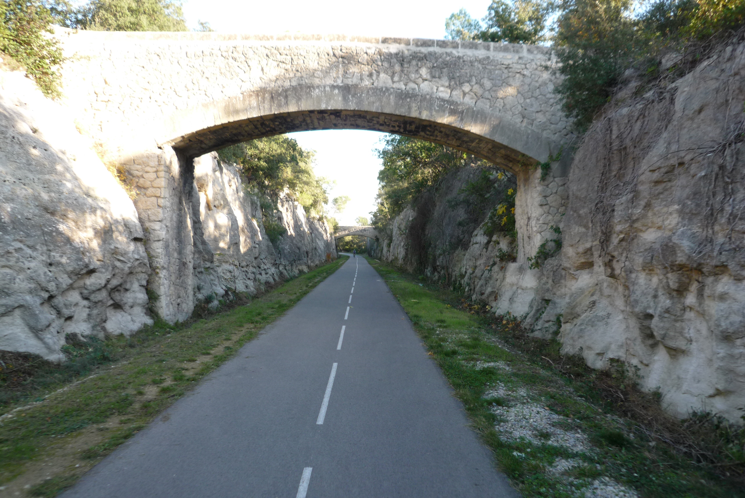 Voici le départ de la voie verte qui a été construite par les autorités du Gard il y a quelques années. La voie commence à côté d’une ancienne gare et, comme beaucoup de telles pistes, elle suit une ancienne ligne de chemin de fer.