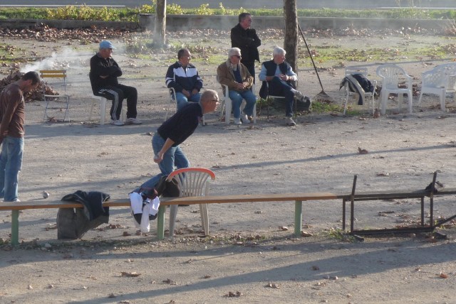 Another nice thing about this voie verte (and other former railway lines I suppose) is that it winds through some villages along its way. Here are some locals in Cavisson playing petanque, a game somewhere between shuffleboard and curling, and about as exciting to watch.
