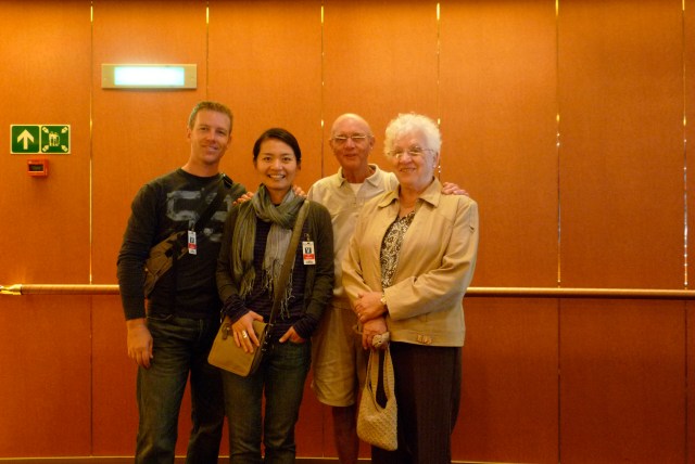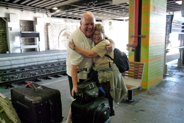 First up were Lois and Gary, on their first Grand Tour of Europe together. After a week on a cruise and another soaking up the sun in Italy, they hopped on several trains and somehow made it to Montpellier. Here they are either looking extremely happy or totally petrified, just off the train in Montpellier.