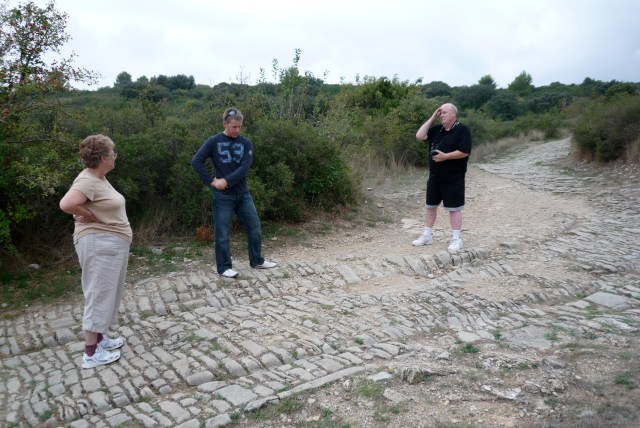 Then, near the end of the day, on the Roman Via Domitia. Notice Gary at the right. Is he: