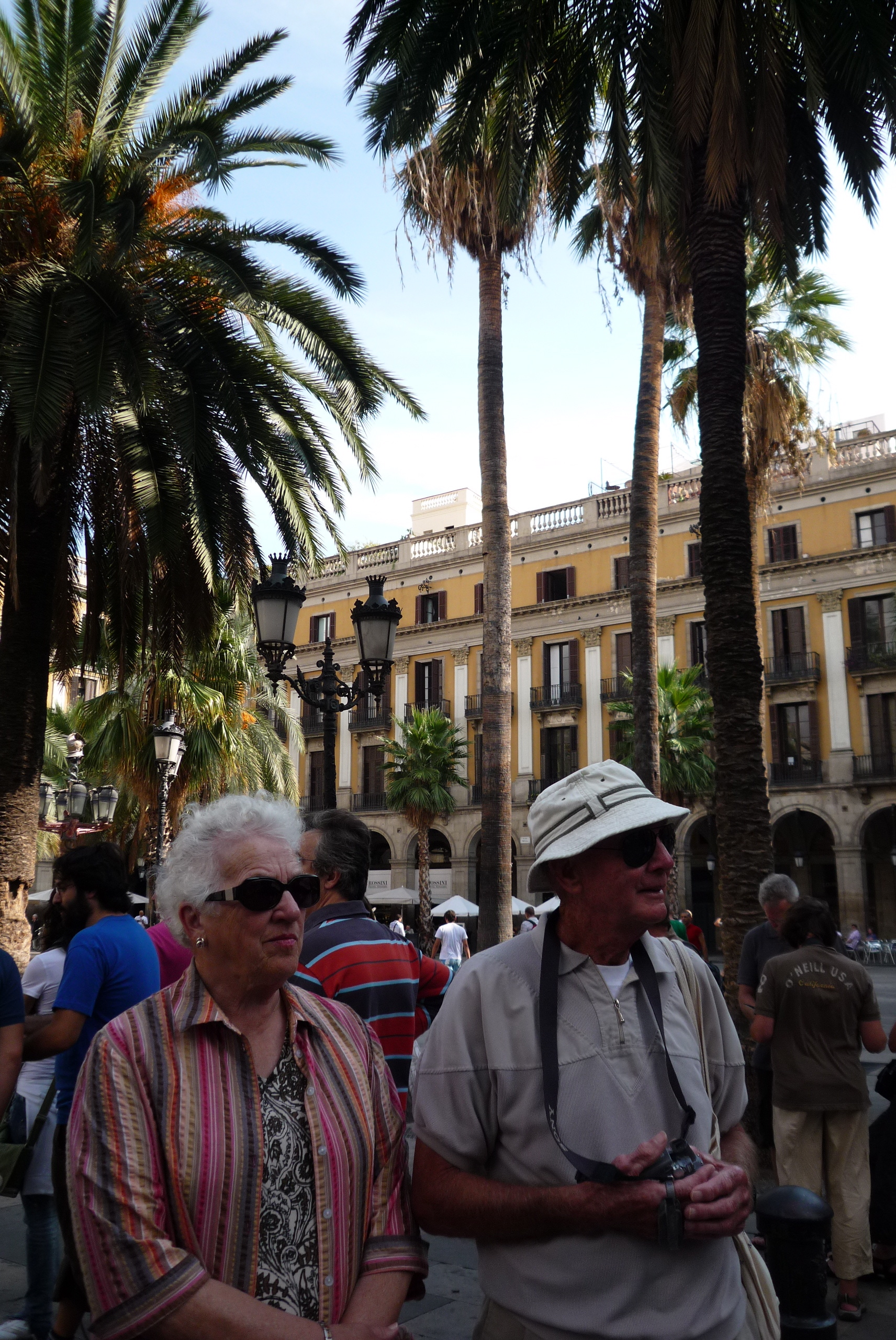 I have never ever contemplated taking a cruise, but after seeing the buffet they got every single day I may reconsider! Here is Mom and Tom walking up La Ramblas.