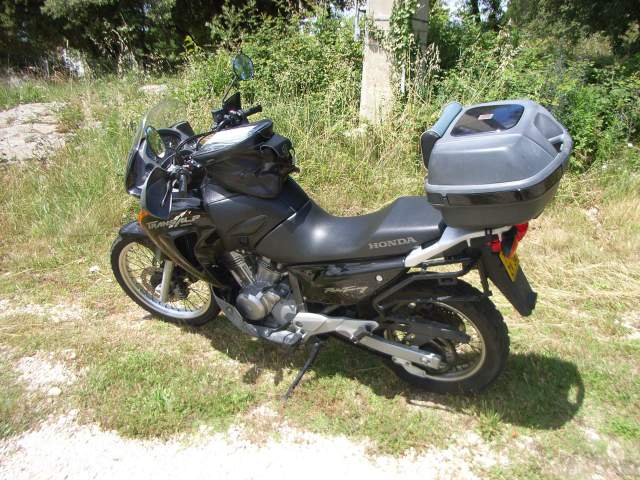 After Mojo went back to the SPA to torture somebody else, I felt strangely liberated (was this how mom felt when I finally left home…?), and while Shoko was safely thousands of kilometers away in Japan, I bought a motorcycle. This is it – a Honda TransAlp 650.