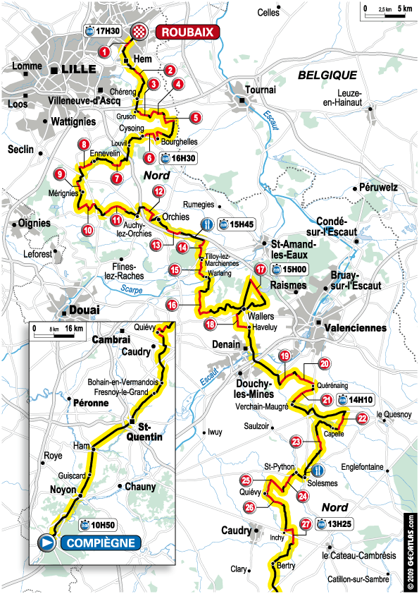If you want to get a good sense of the toughness of this route, not to mention the riders, check out “A Sunday in Hell“, a 1977 documentary that follows the race from first massage to last shower. Merckx, Poulidor, Maertens and other legends of European cycling are in there. A more modern attempt is “Road to Roubaix”, also worth a look, if for no other reason, to see how little Hell has changed in 30 years!