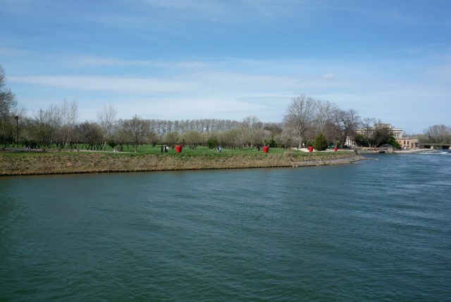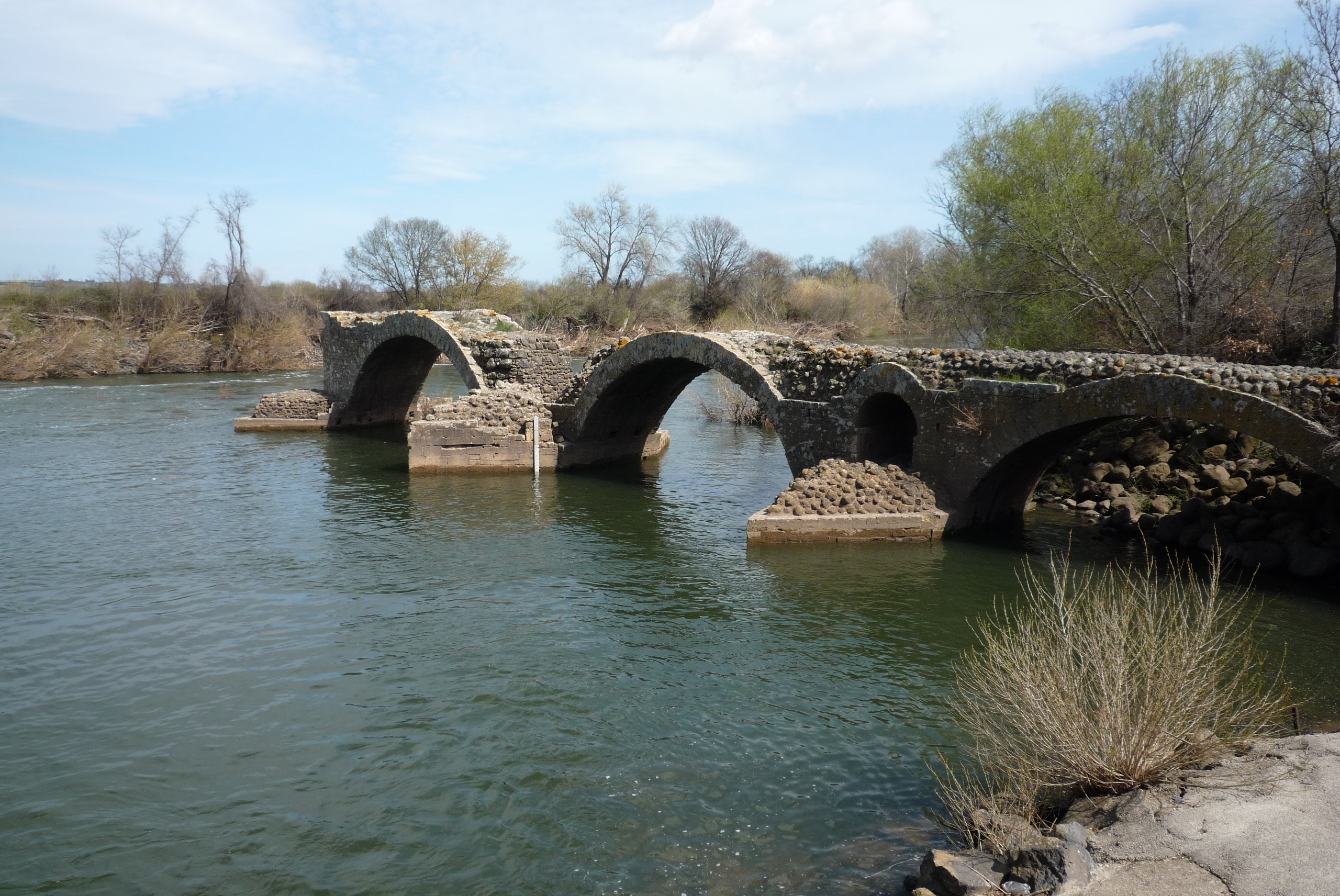 And then it was to Saint Thibéry to satisfy my Roman bridge fetish. That is, until I got there and read that the original bridge had been rebuilt in the Middle Ages. It appears that there is a bit of controversy over the age of this thing, since the Herault site states that it is ‘bien romain’. True or not, this is what it is today – 4 arches (out of an original 9) spanning half the Herault River.