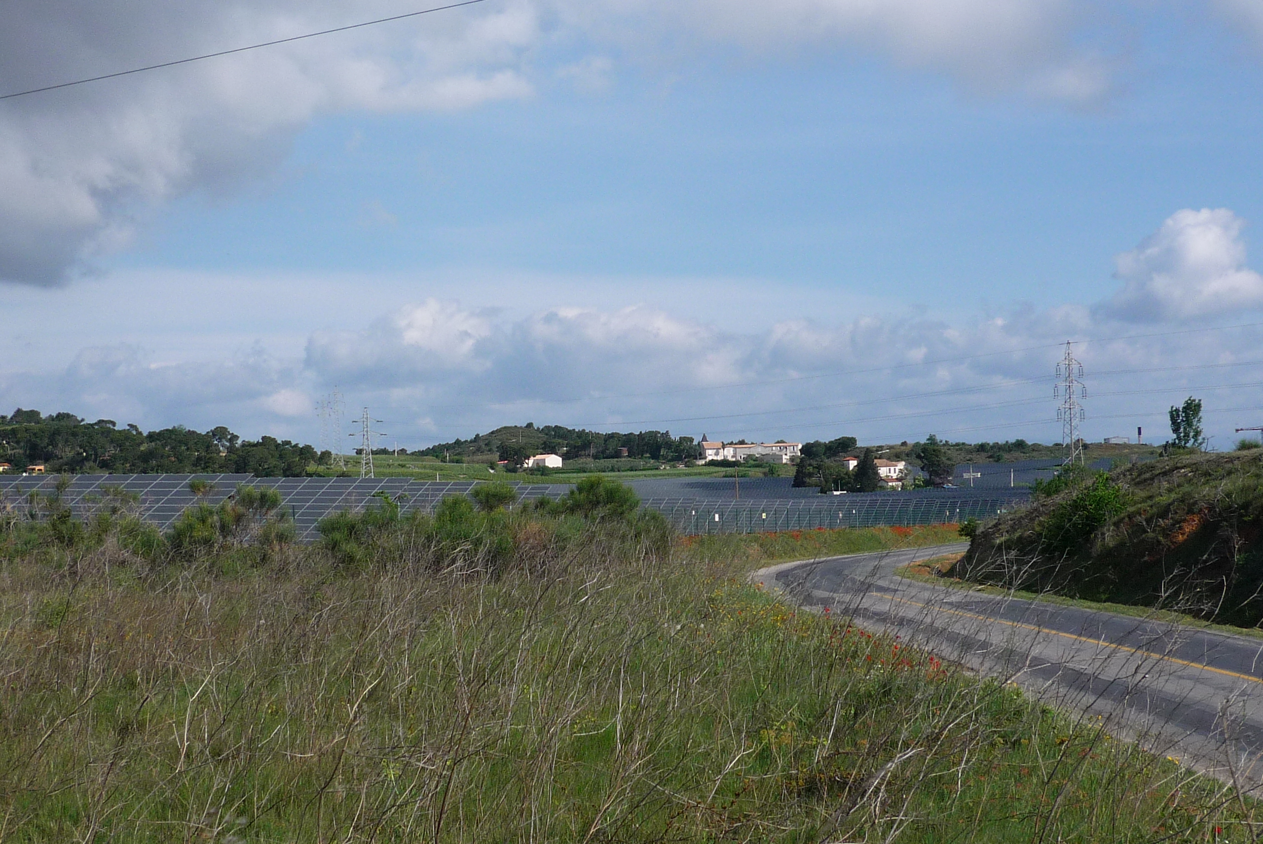 But before we get to that, I had to ride through the uninspiring northern suburbs of the city, then an industrial park, which at least had something interesting in it – this giant field of solar panels. I tried to get a high vantage point but this was about as good as I could do. The rows of panels stretch nearly to end of the photo. I’m sure it’s pretty small in comparison to the really serious ones, but I was impressed, and happy to see the land in Languedoc can be used for more than vines.