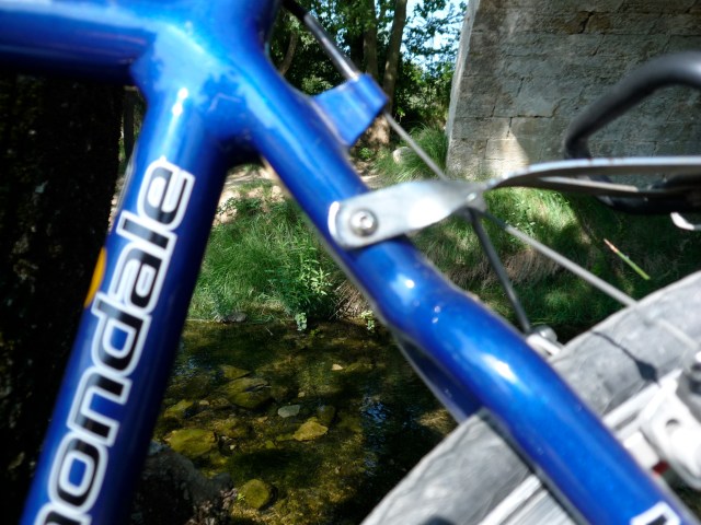 And it got worse after that. This little path led to one of my favorite Roman bridges, which I approached from the backdoor for the first time. Where, incidentally, I met two mountain bikers who looked at me and my road-looking bike with novel curiosity.