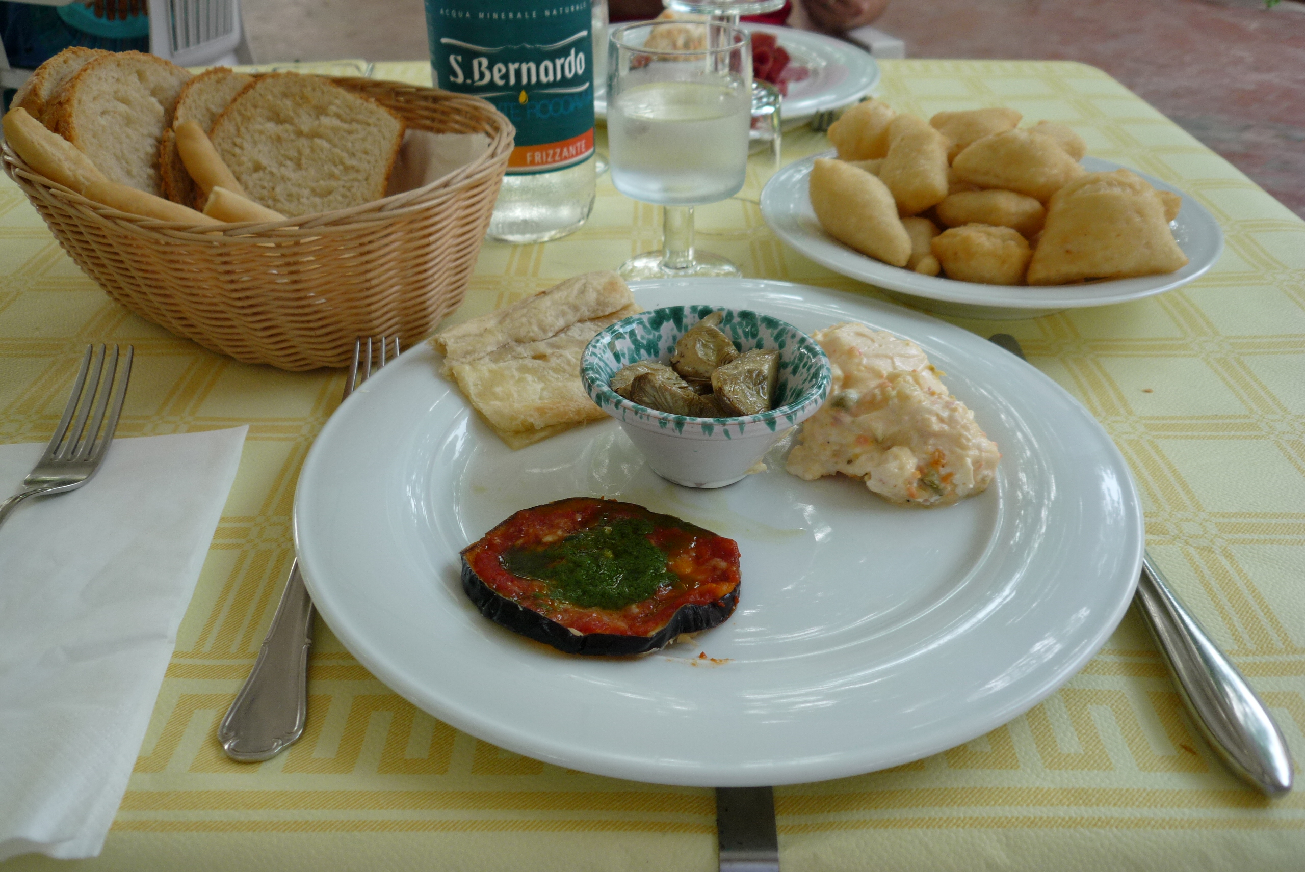 After a very pleasant stay at the campsite near Stella we took off, full of optimism that the few hills we had climbed to get there the day before were nearly done, and that we’d be on the flat plains before our cream-filled croissants were even digested…not to be, I’m afraid to report. Turns our those ‘hills’ are actually ‘mountains’, albeit little ones, but pretty damn steep and not near finished. It was a long, hard slog up there, but right at the top we were rewarded with an excellent (and expensive!) lunch under the pines.