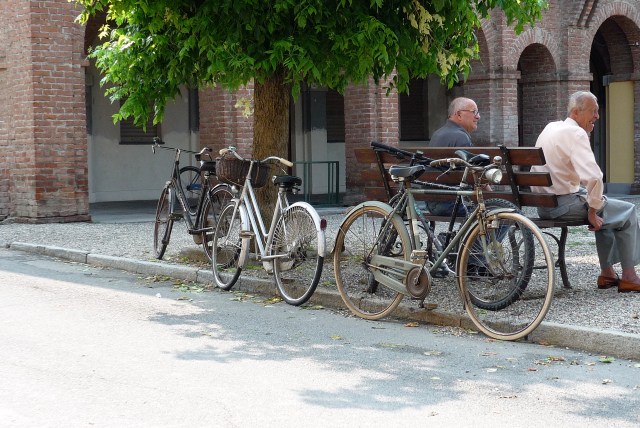 Day 5 saw us heading north a little with thoughts of catching a train to speed us up a little. At our morning coffee break we discovered something nice – people on the flat bits of Italy ride their bikes all over the place. I may add also that they seem to hang onto their steeds for many years. Check out the antiquity of these machines!