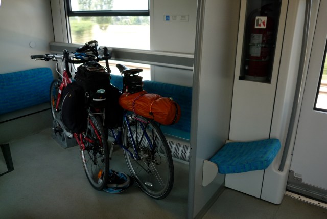 Then, in Tortona, we hopped on the train for 200 km or so. Here is the first of several bike-friendly train shots of our trip. I am ever surprised by the speed in which things can change – in every country we attempted it, there was no problem at all getting our bikes on a train.
