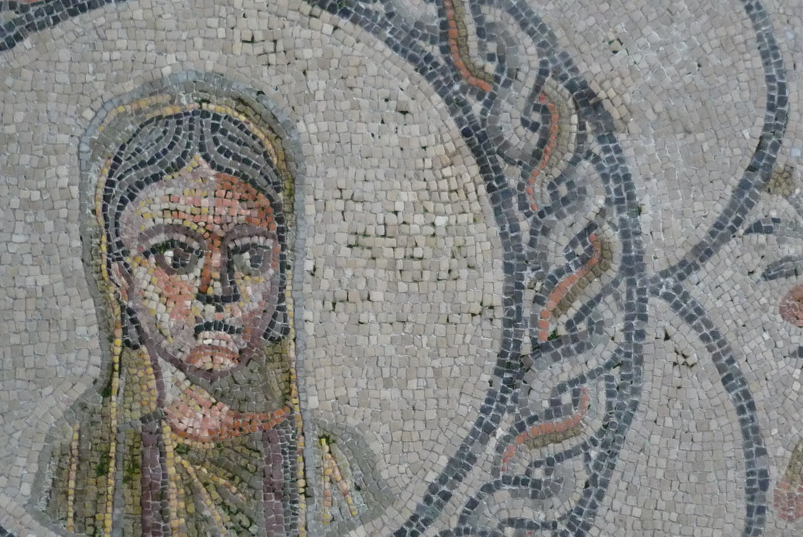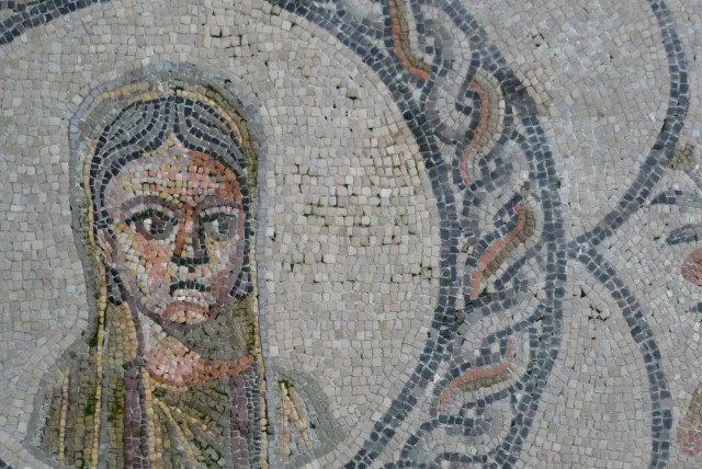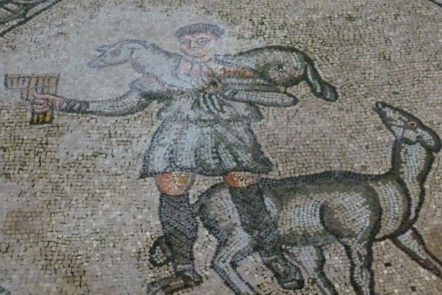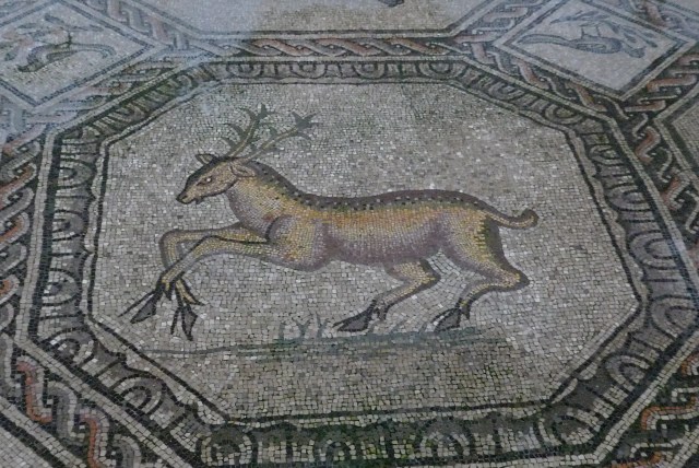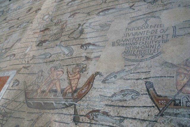 But an amazing 4th century mosaic covers virtually the whole floor, and it is very well preserved, thanks to the folks in the Middle Ages covering it up with their own floor for a thousand years or so.
