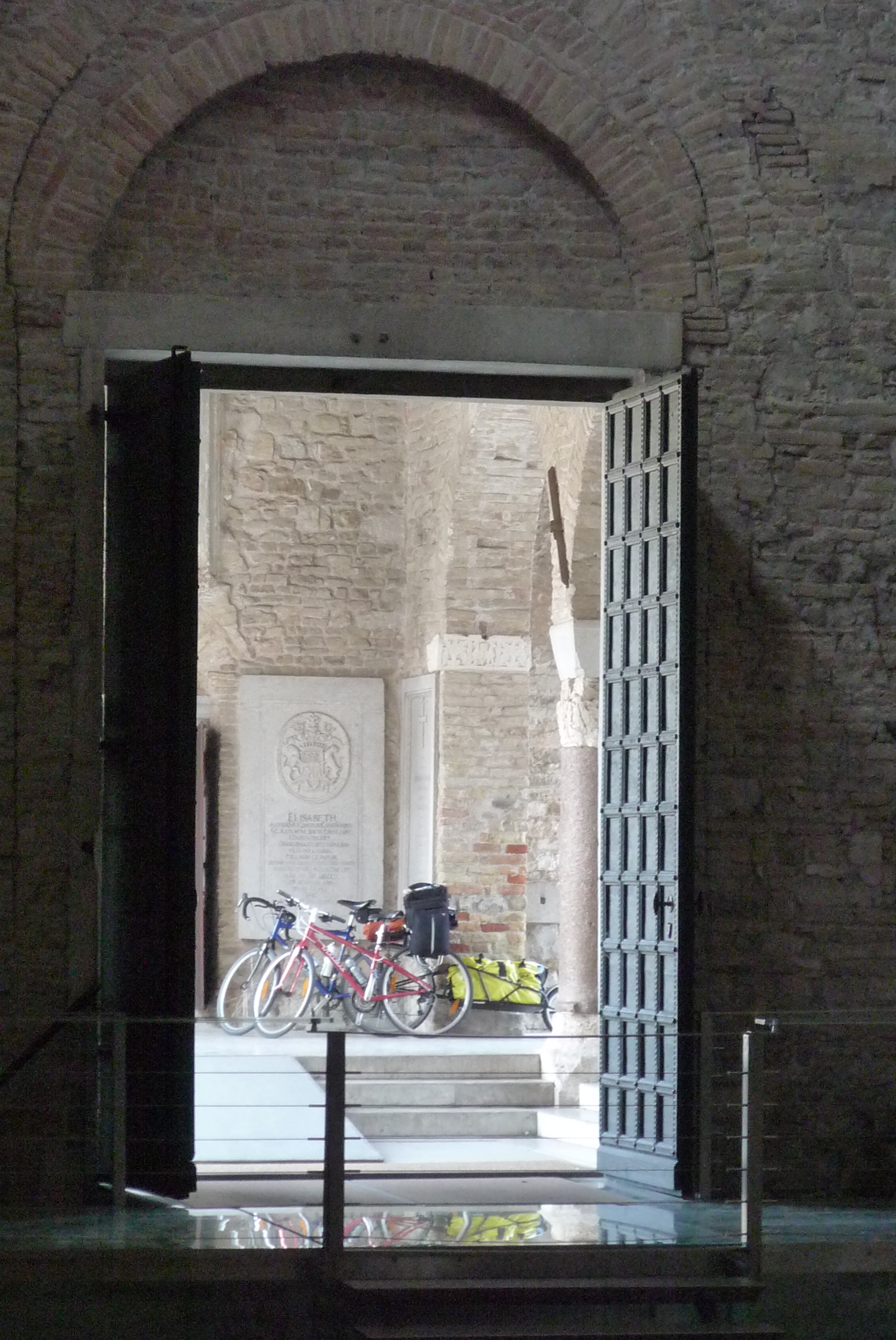 Another surprise of sorts (I didn’t know of its existence till a day before we got there), impossible-to-spell Aquileia is a UNESCO World Heritage Site, and one of the largest archeological digs in Italy. The town is packed with Roman ruins, but mostly of the sort where a great imagination is required…i.e. foundations of buildings and the like. Lacking an imagination after a long day in the saddle, we instead focussed on the Basilica, also part of the World Heritage package.
