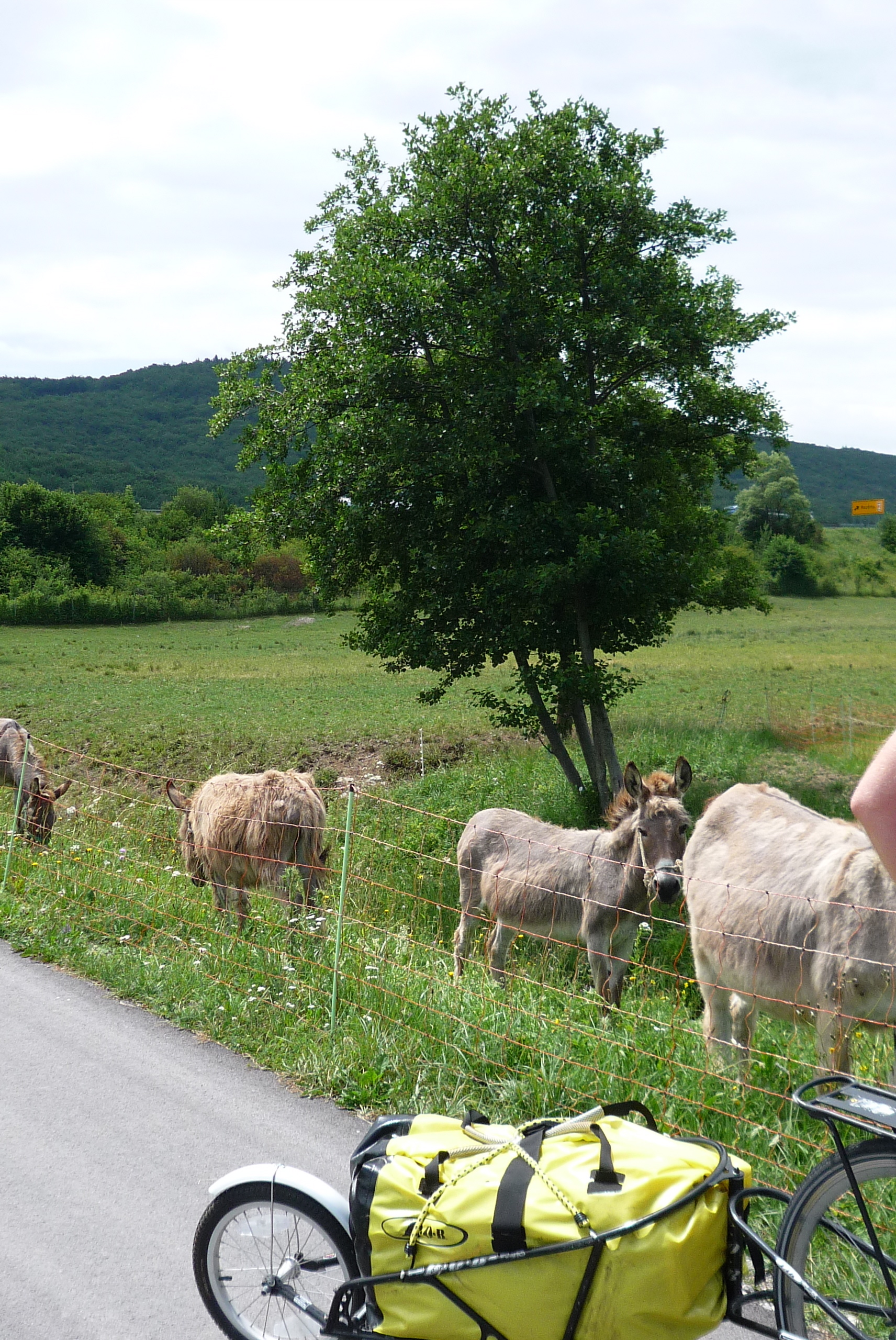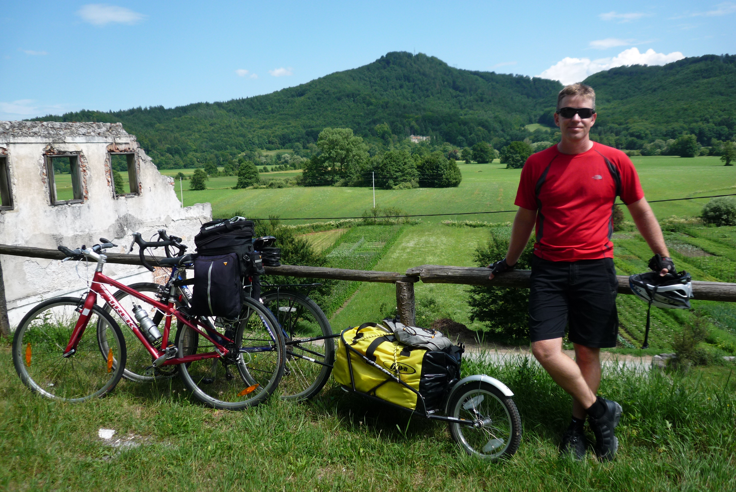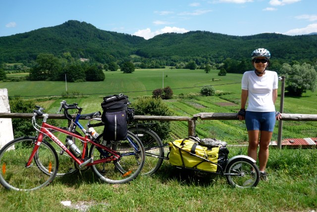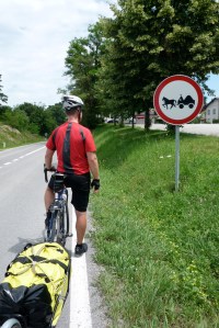 Today was a long ride – nearly 100 km – but the extreme beauty of Slovenia (and its donkeys…more to come on that) made the hours in the saddle pass by quite painlessly. Well, not painlessly, I suppose. There were a bunch of hills to get over, as would be the case pretty much every day in the country. Here’s me doing my best Alberto Contador impression.