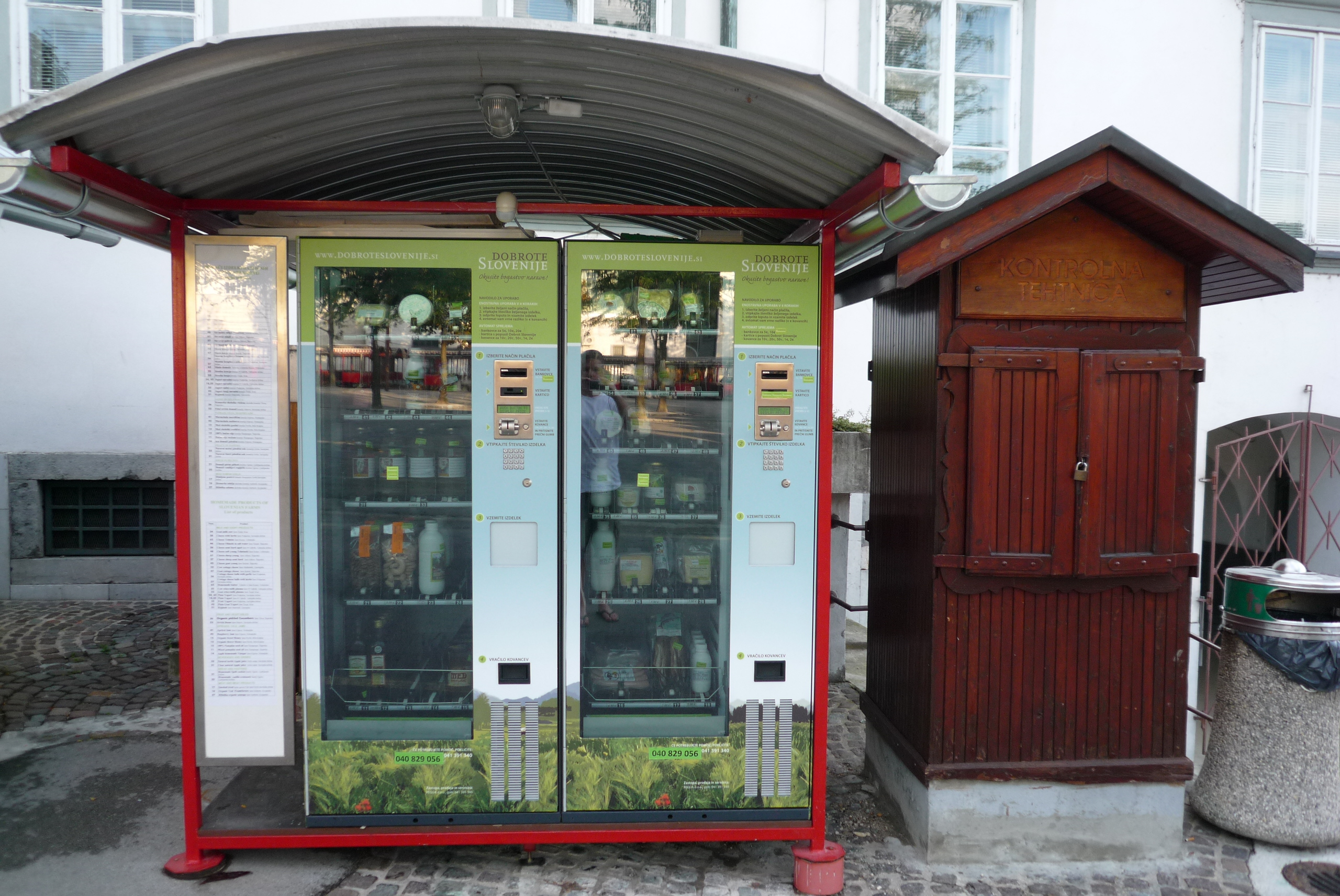 This is a similar machine nearby, selling other farm products, equally fresh and equally unspoiled.