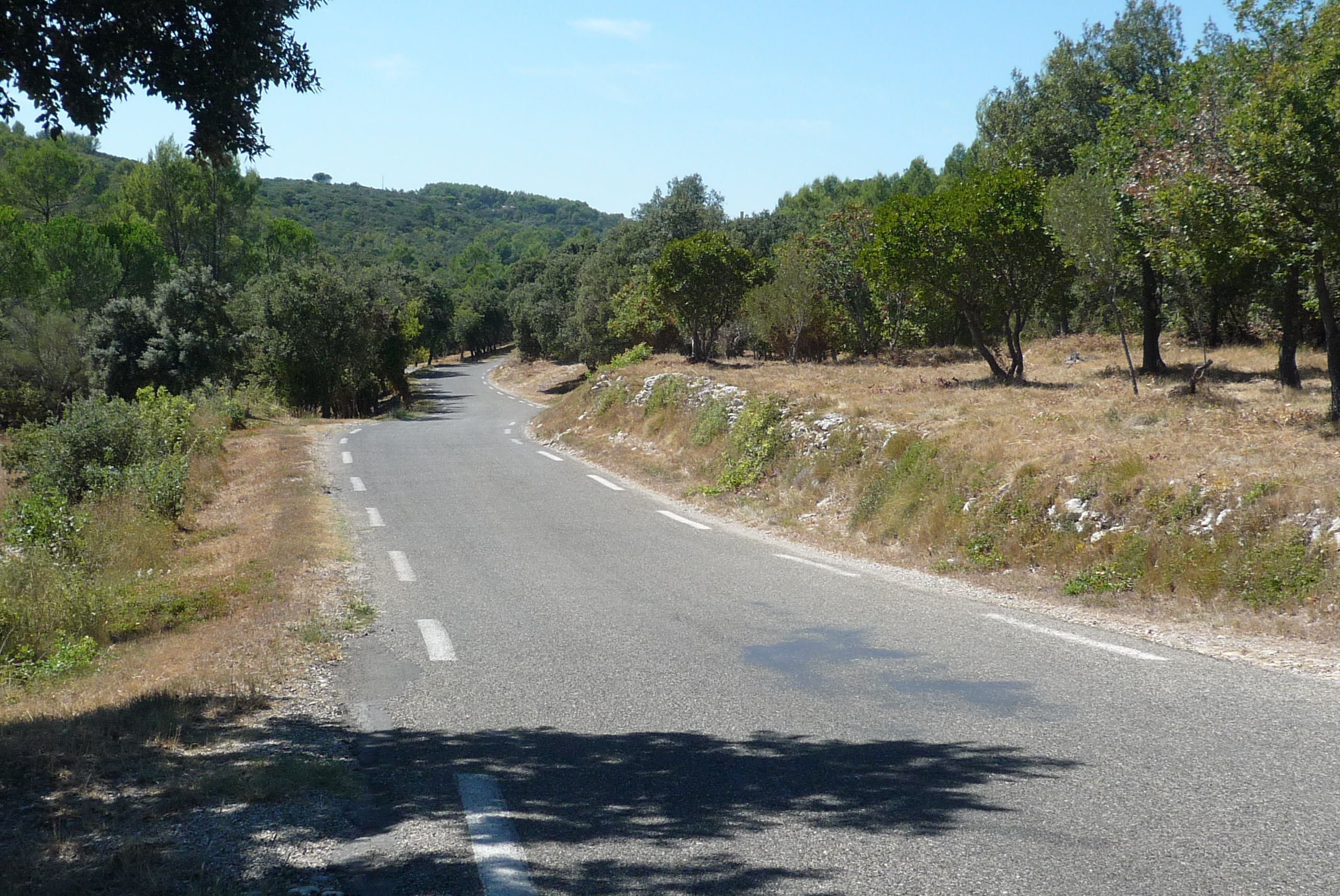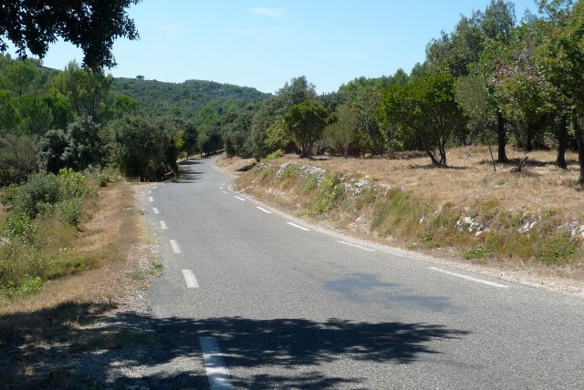 Then turns east along the top of the hill, wiggling its way towards Cabrieres in and out of hidden valleys.