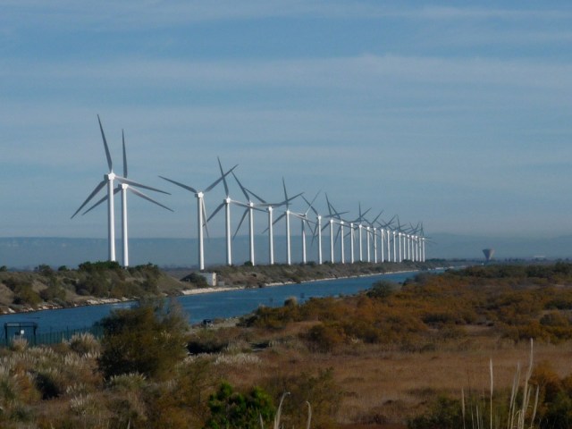 But it’s funny how fickle the mind can be. For about 10 km I was blissfully riding along, thinking how wonderful everything in the world was, then after 15 km or so I started thinking that a hill might be nice, or maybe a village…even a cow would do. But no, it was 40 km of this before I turned and crossed the Rhone. Well, there were some wind turbines…