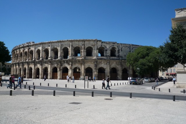 Nîmes retains a good part of its Roman heritage. There are two outstanding buildings that date from this period – both are still standing, and one is still being used for its original purpose, i.e. entertaining the locals with blood sport. Just now they use bulls instead of gladiators.