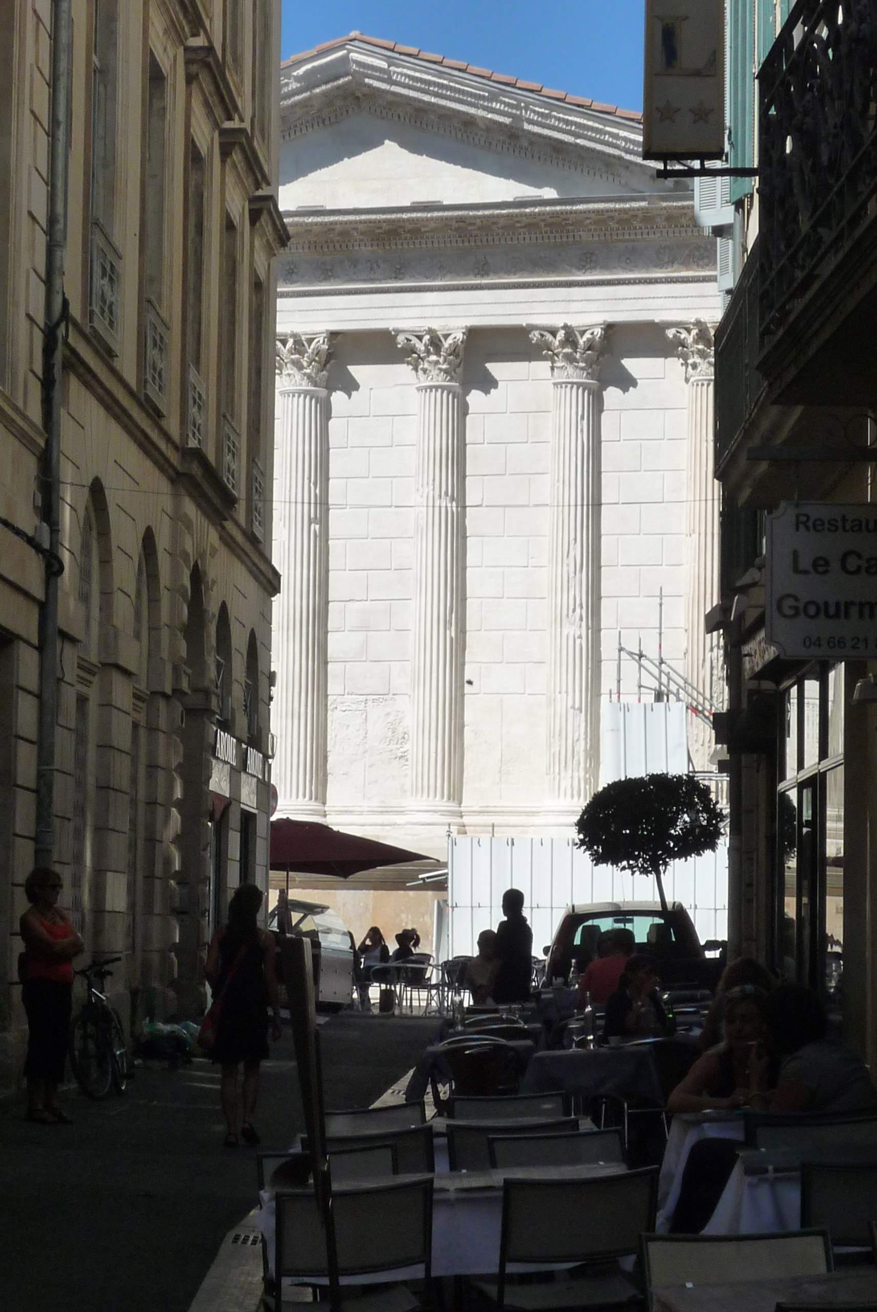 The other is the Maison Carrée, which is neither a house, nor square, but is one of the best-preserved Roman temples in the world.  It has just received a good brushing and is now almost blinding in its beauty.