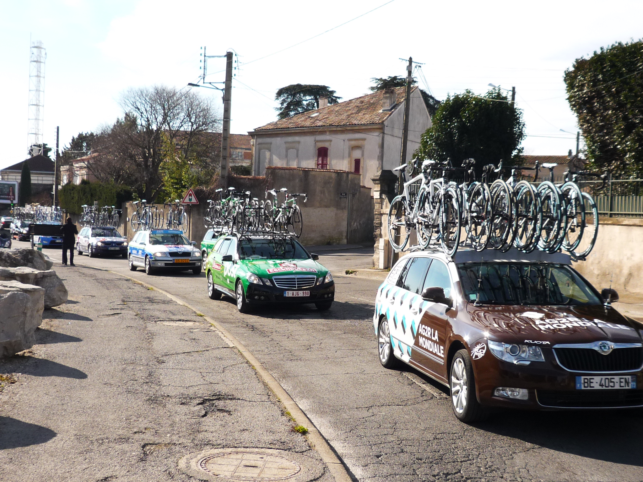 As I was riding out of town a couple days ago I noticed a Katusha bus parked outside the Imperator Hotel (famed Belle Epoque hangout and yet another place Hemingway got drunk…I’m guessing, since there’s a bar named after him inside). Afterwards, I checked to see what was up and discovered that it was the Etoile de Besseges, the first professional stage race of the season in France.