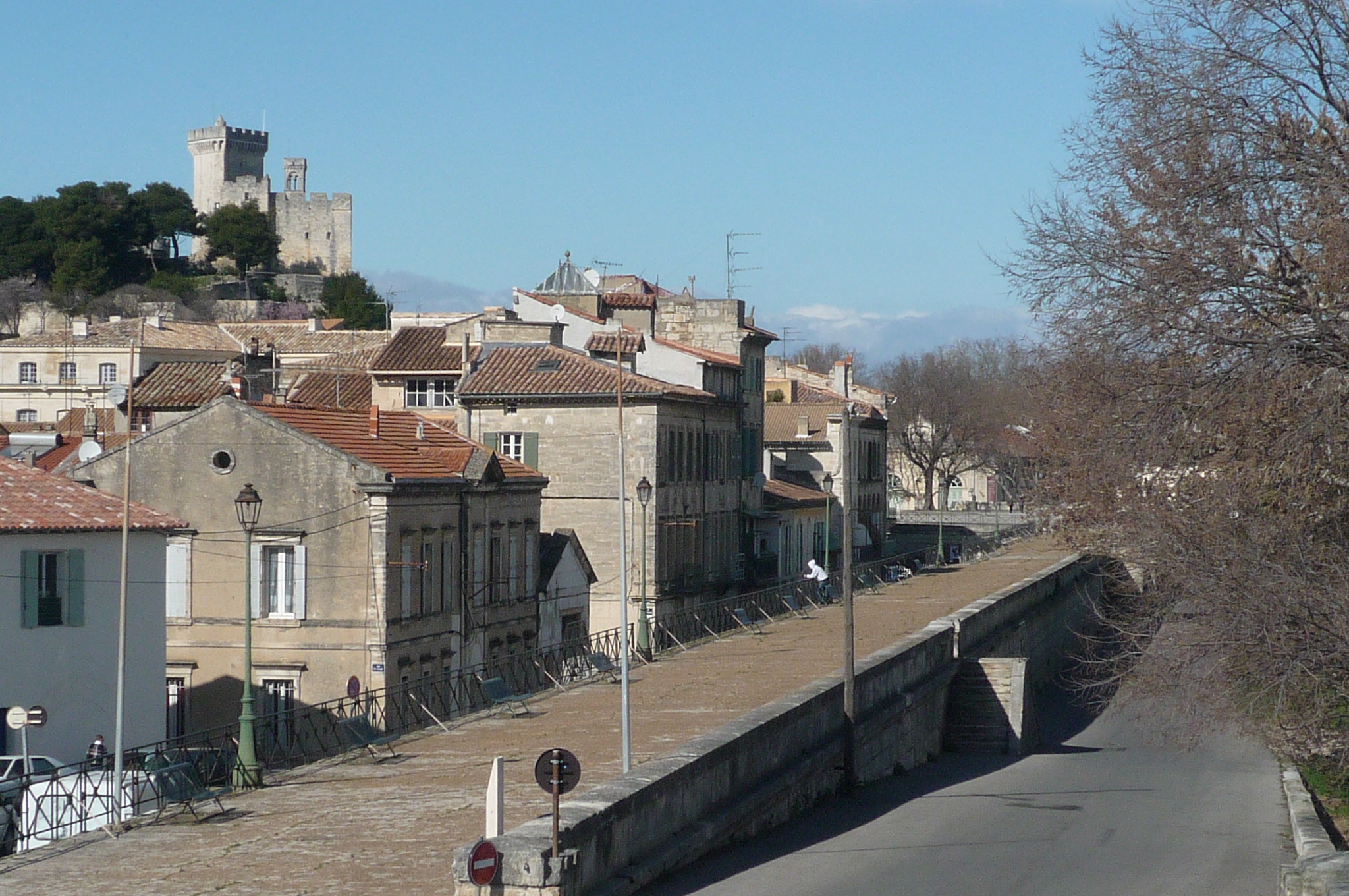 Not far along the road I crossed the mighty Rhône River, where two rival castles still stand, one on either side. The left is in Beaucaire, in what is now Languedoc-Roussillon, and the right is Terascon, in the region of Provence-Alpes-Côte d’Azur. You might need to squint to see the Beaucaire castle. Top left of the photo.