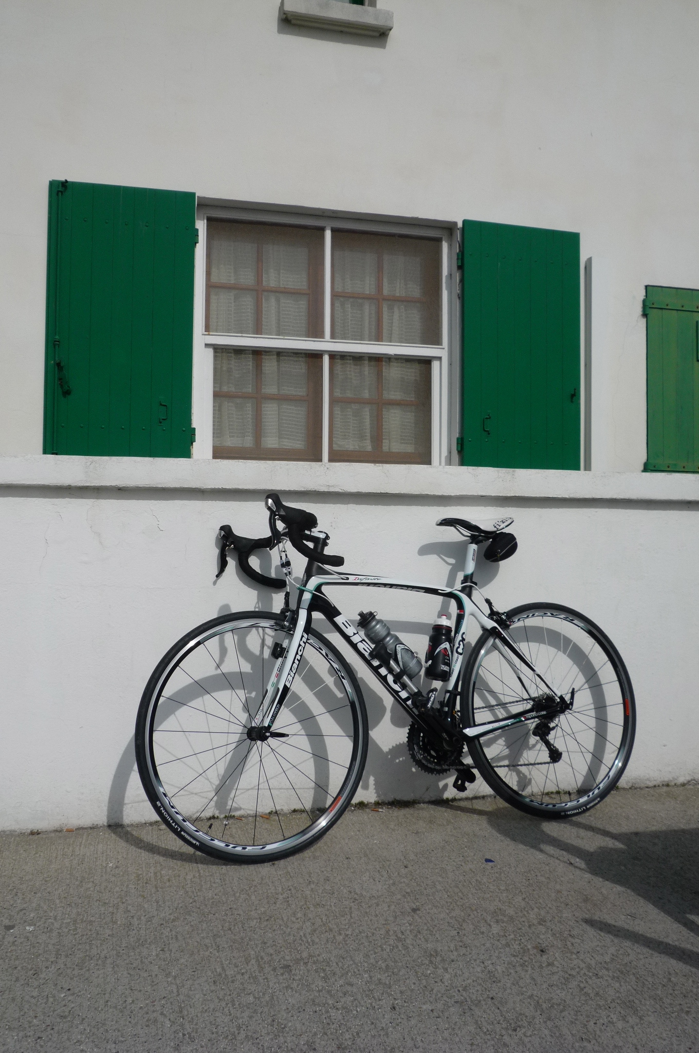 It was a long ride down to the sea, so I had some lunch at a little snack bar, my Bianchi shining in the Mediterranean sun.