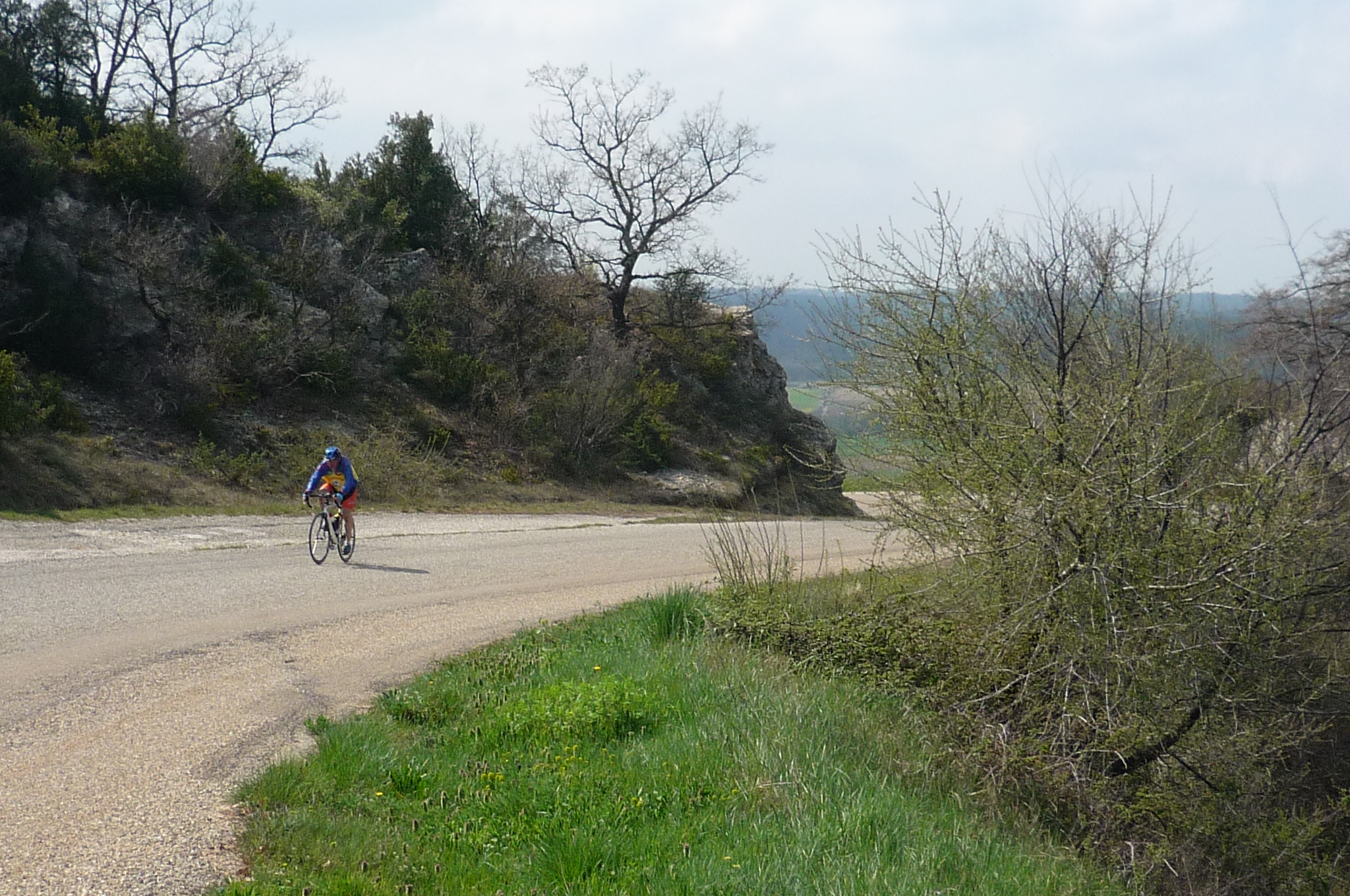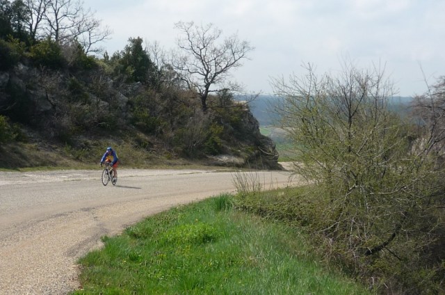 This is Lussan, a fortified village with a great-looking gîte at the bottom. Would be a great place to stay a week for a cycling vacation. Excellent riding up here.