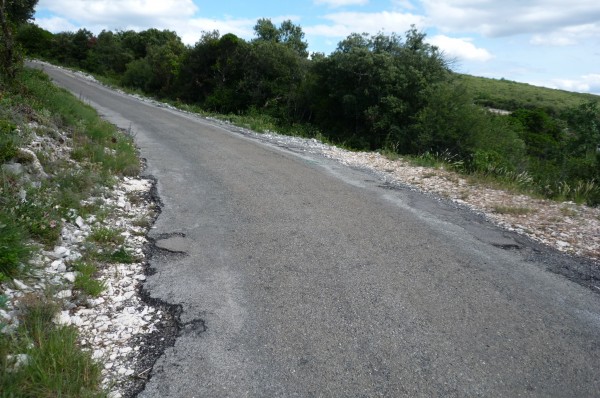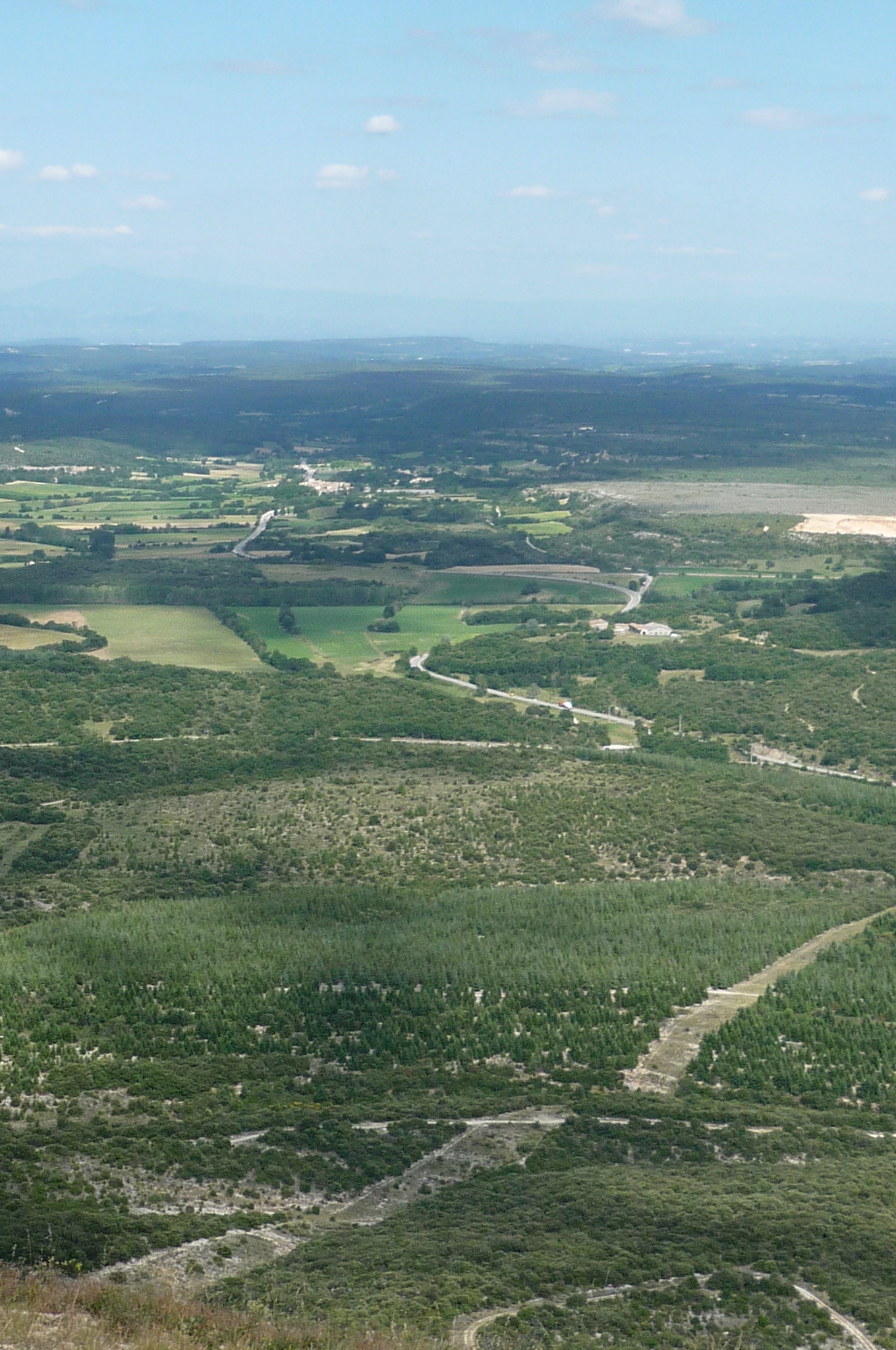 Here is the great view from the top. This is looking east towards Mt. Ventoux, but my little lens couldn’t really capture le Geant from this far away. It’s there, if you squint.