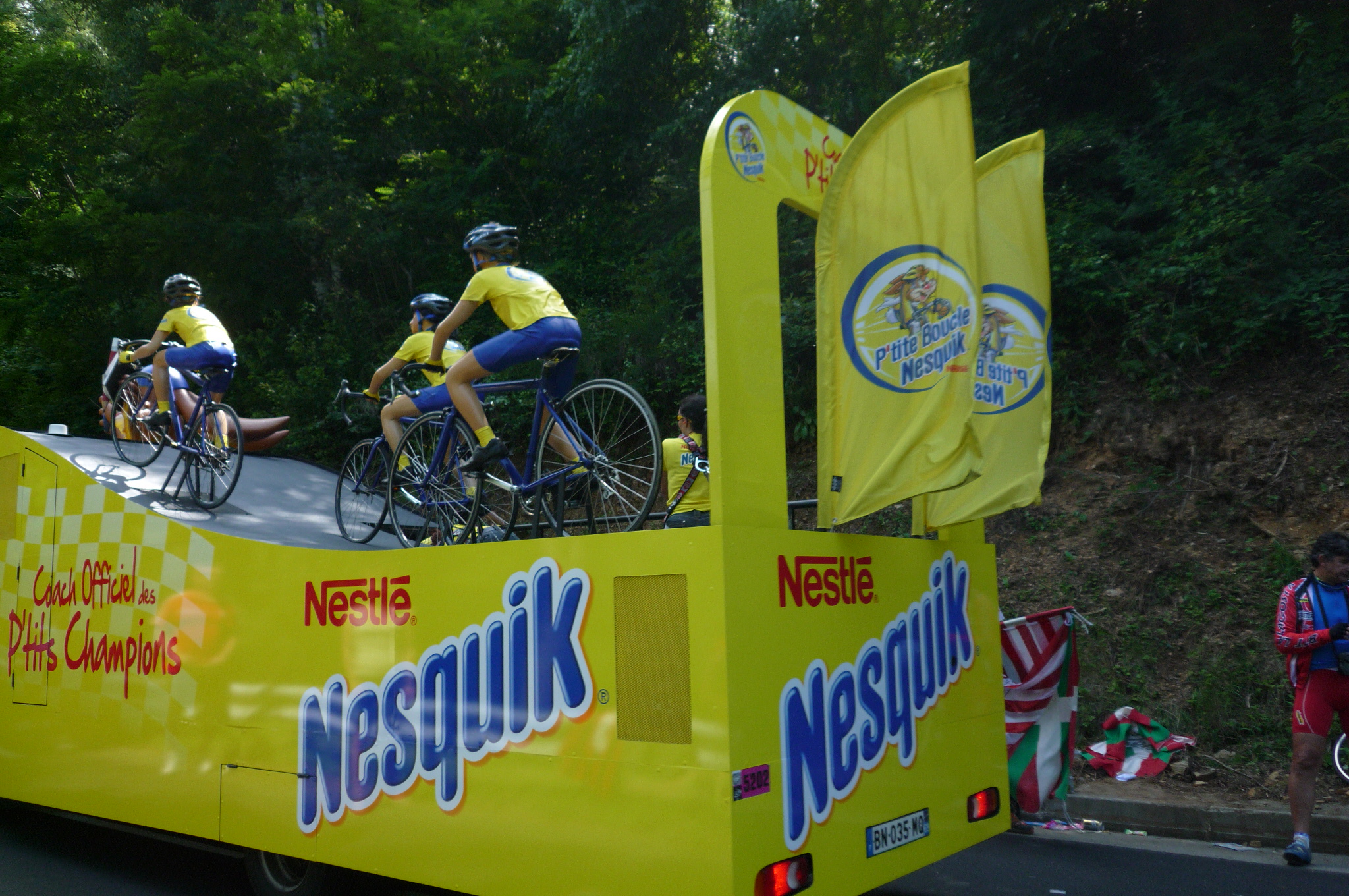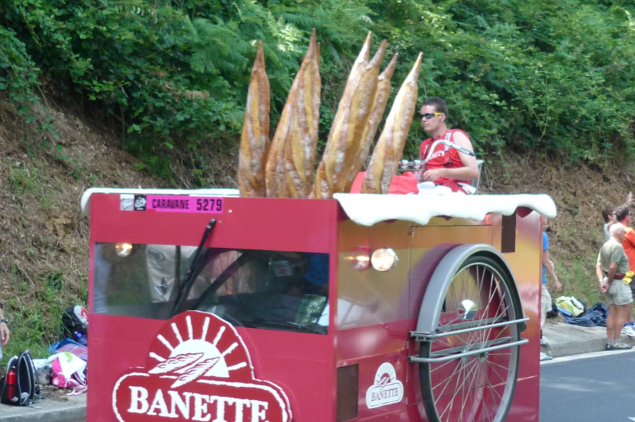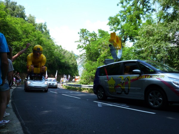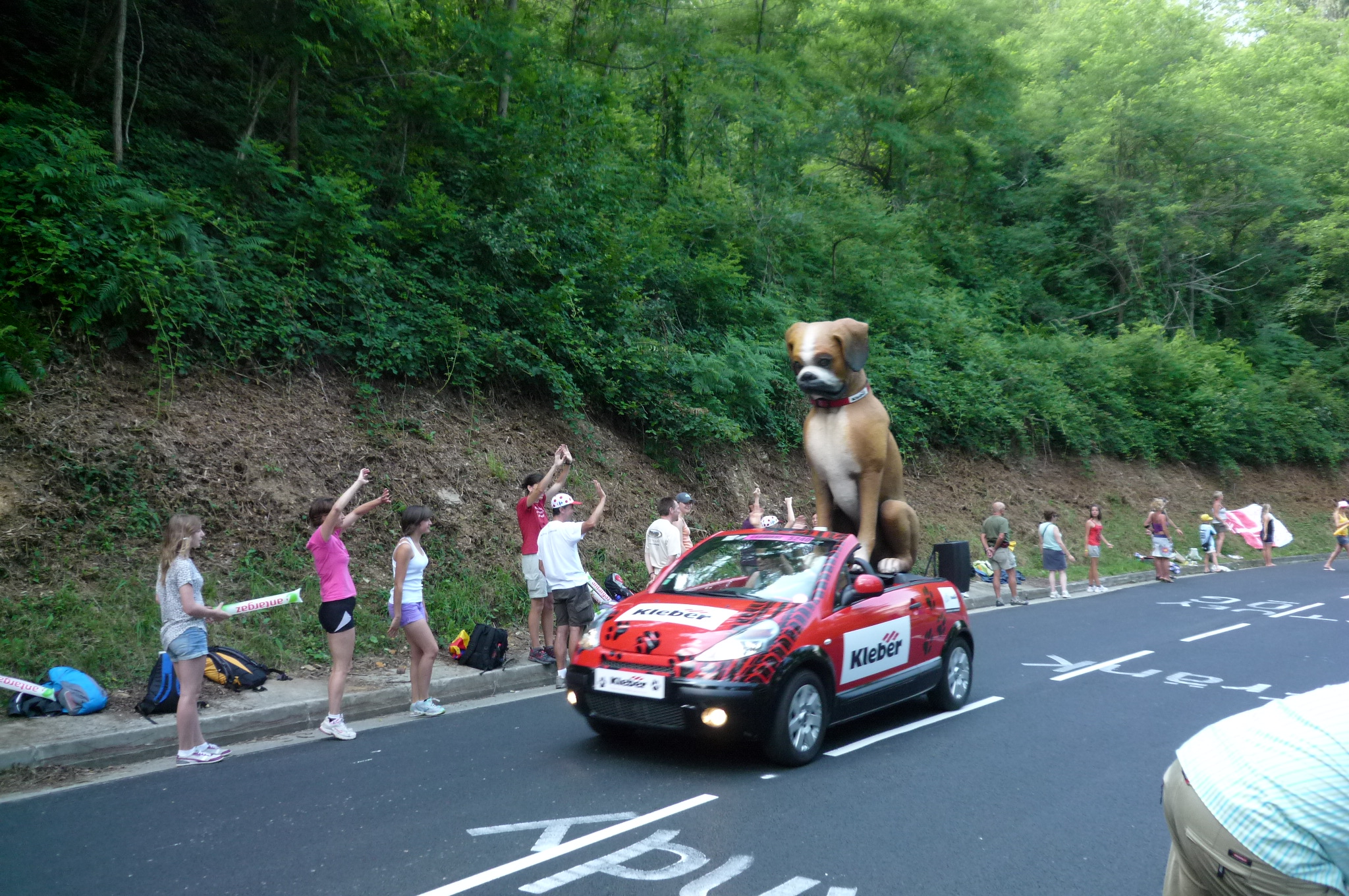 Then it was a waiting game. Fortunately, at the Tour you are never really bored. The publicity caravan, a travelling circus of near-endless kitsch, rolls through a couple hours before the riders.