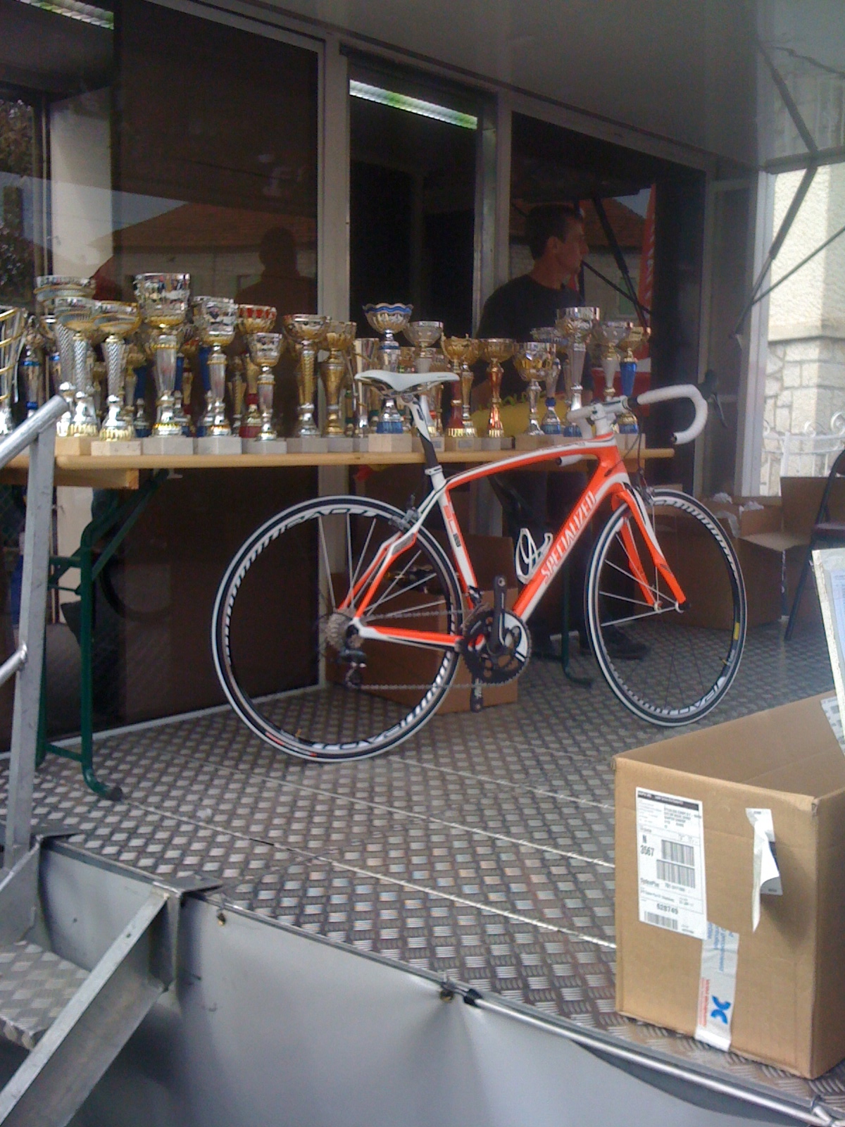 There are always trophies awarded for top places in each age / sex category. There is nearly always a draw after the race as well, where something decent from a sponsor is up for grabs, like the bike in the photo below.