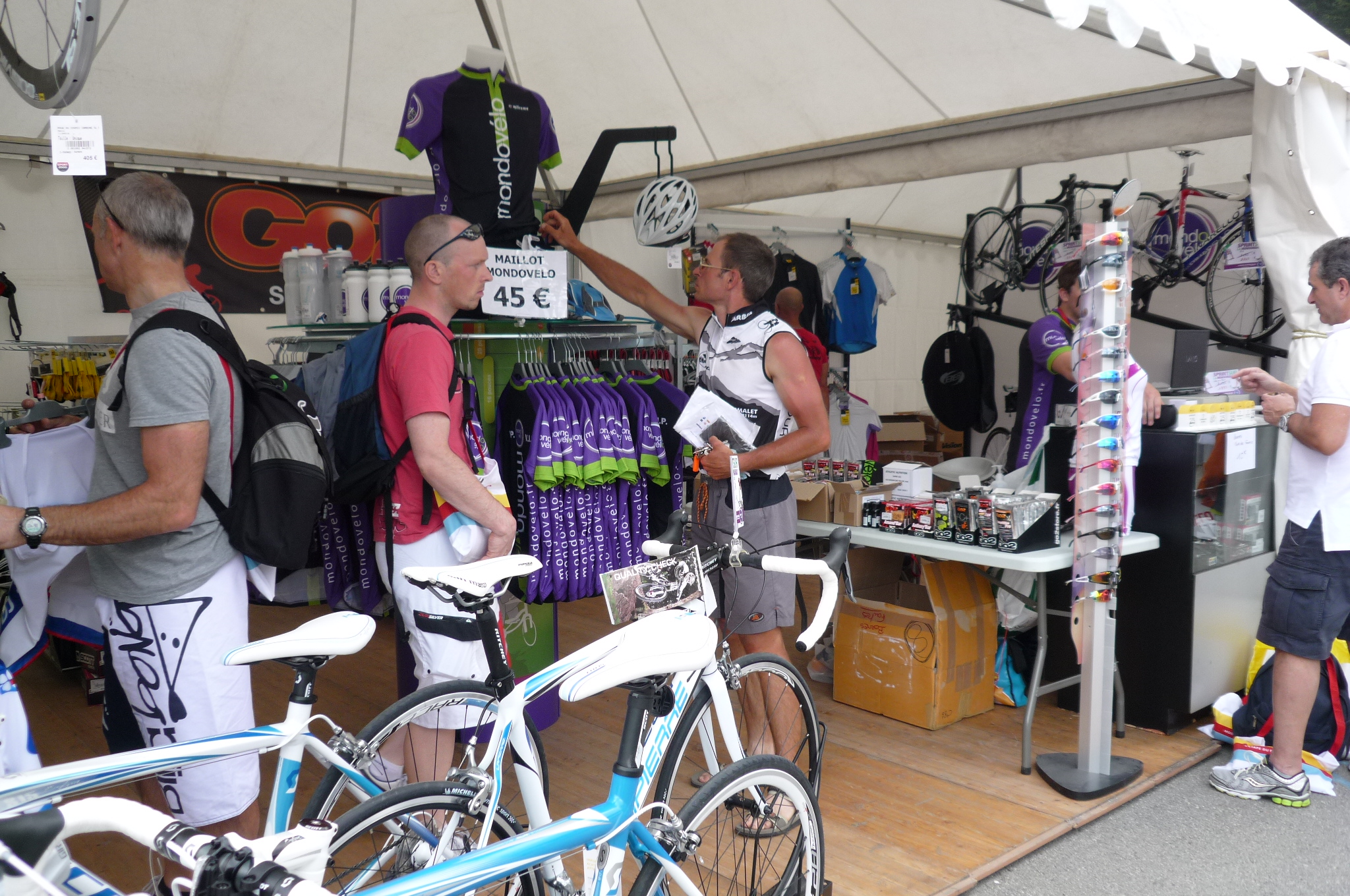 There is often a ‘village’, with bike makers, accessories vendors, wheel manufacturers and the like, centered around the start/finish line. This is a good place to buy that extra energy gel you might just need, or get a last-minute tire pump-up.