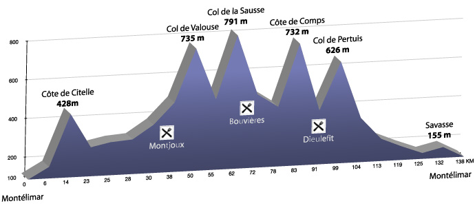 Also, look for the dénivelée, which is the actual vertical distance you will need to climb. This magic number can range from nearly zero to the 5000 meters of La Marmotte!