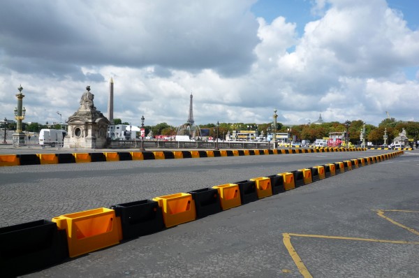 The Tour de France ended in Paris yesterday, and thanks to Karsten, Sarah and the TGV, I was there to see it! After being graciously met at Gare de Lyon by the two of them, Karsten and I hustled over to Place de la Concorde to get some photos for the blog. It was around 6 hours before the peleton would arrive, but the truly committed were already staking out their places on the barricades.