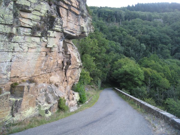 It was upon leaving Fontiers that I finally understood the meaning behind the name Montagne Noire.  The regional forest, which starts just outside of Fontiers, used to be so dense with fir, oak and beech trees that the sun rarely broke through.  Although I imagine less so today, there is still a sense of riding through a tree-lined tunnel.  In fact, when I left the valley down below at 7am it was 15 degrees Celsius, but only 10 degrees with a heavy dose of humidity as I pedaled through the forest about an hour later.