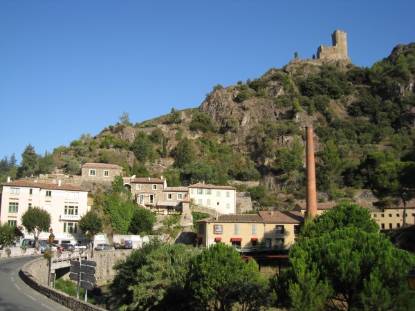 The gorge finally opens up at the tiny village of Lastours.  For such a small, off-the-beaten-track place, it sure has a lot to offer.  How about a 1-star Michelin restaurant, Le Puits du Trésor, charming bed and breakfasts, a reconverted textile factory, and the real showstopper, vestiges of four Cathar castle strong-holds perched on the rocky outcroppings above the village.  Lastours is definitely worth a visit off the bike.