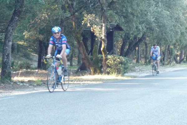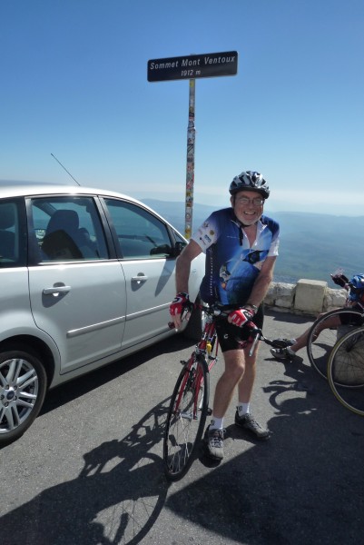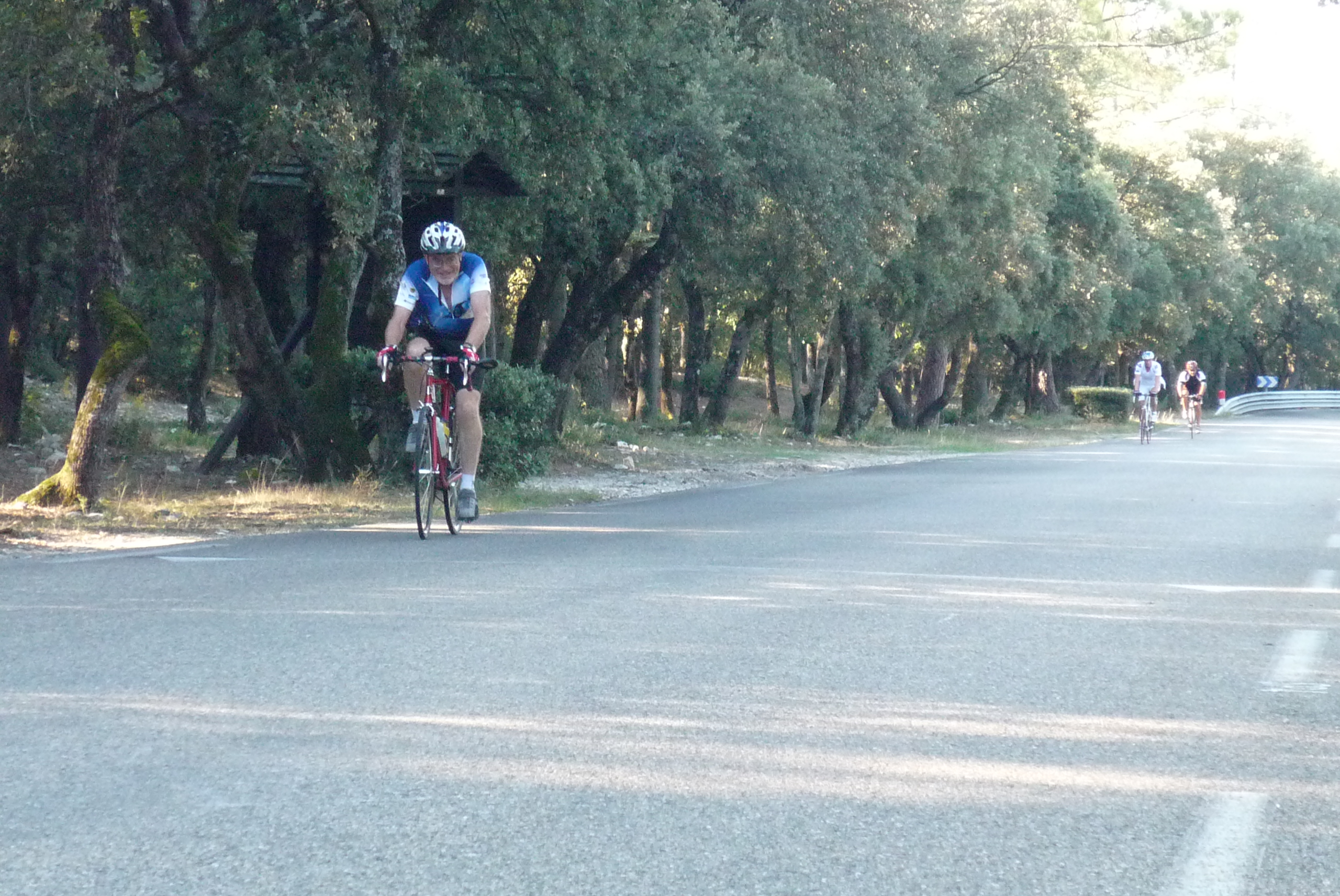 After the jubilation wore off we waited some more, then The Call came. Rick and Roger had valiantly tried to get themselves up the north side of the mountain, but it wasn’t to be, so we all drove down to pick them up, passing a fresh-looking Tim on the way. He went on to do two full ascents and met us back at the start in Bédoin, where everyone had a celebratory beer in the village before the long drive back to Montpellier.