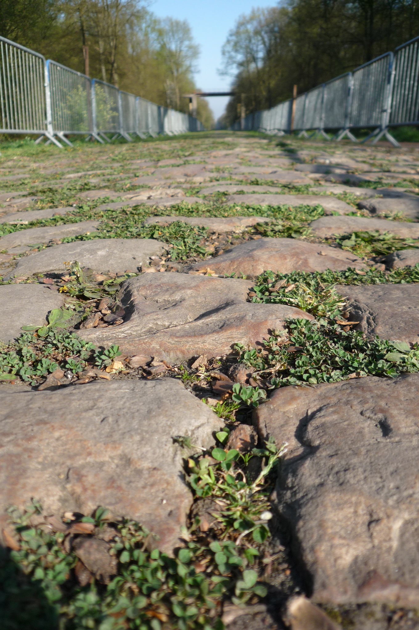 A steady stream of cyclists at the foot of the Koppenberg in Flanders, 22% of cobbled hell, but I have to admit it looks quite nice in the photo.