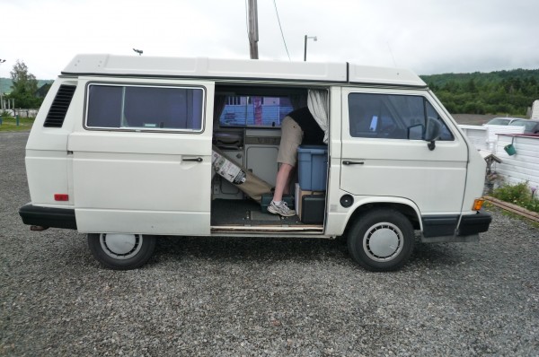 I flew for the first time since 2008, inflating my carbon footprint, but for a good cause at least. My old friend Scott picked me up in Montreal and we puttered in his VW 1000 km along the St. Lawrence River to my hometown of Gaspé, Quebec.