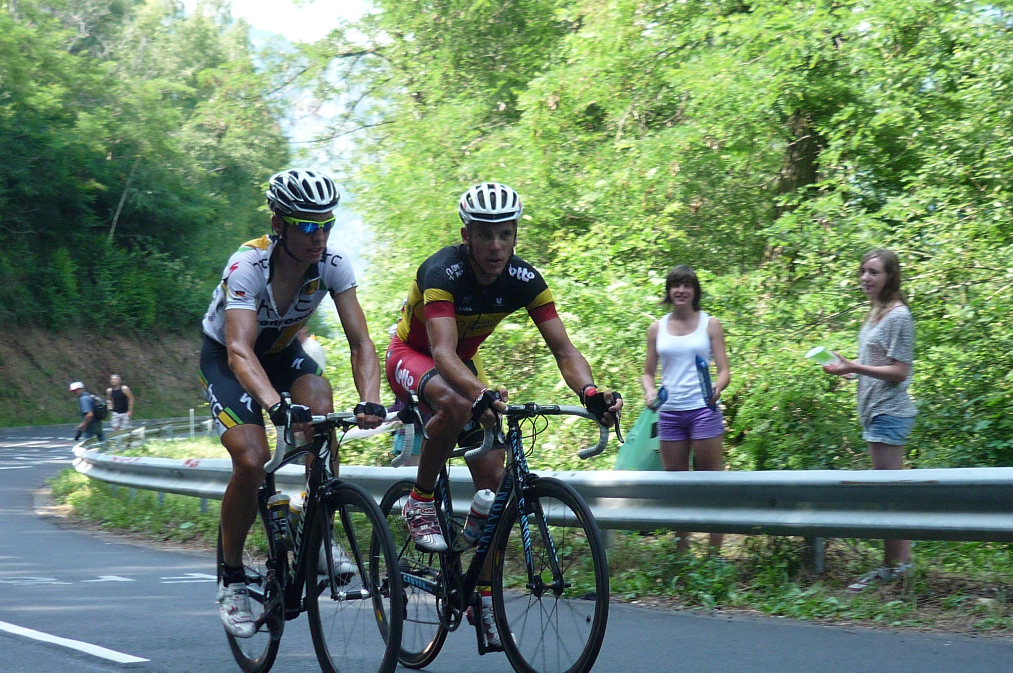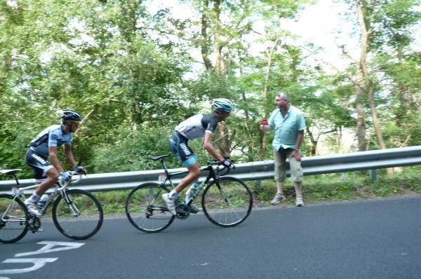 Unconcerned about time, über-rouleur Tony Martin and the best cyclist of 2011, Philippe Gilbert roll up the mountain at a casual pace.
