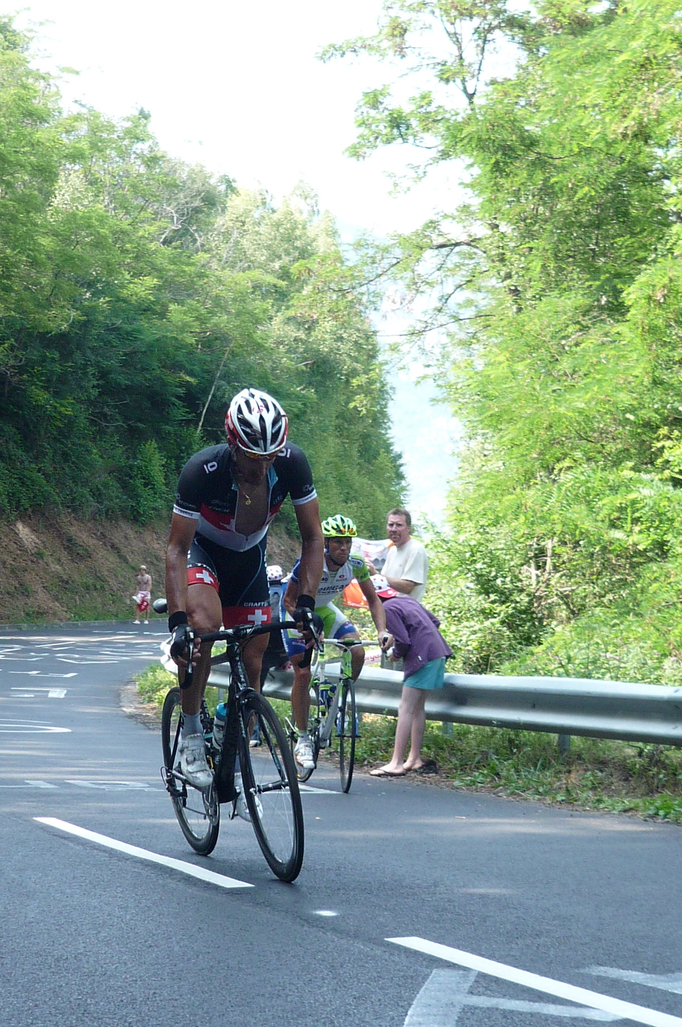 Fabian Cancellara is just behind them, lugging his massive thighs up the hill.