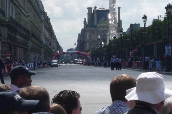 For my last TDF sighting I took the train up to Paris to watch the last stage with Karsten and Sarah. This is the flamme rouge (marking the final km) next to the Louvre.