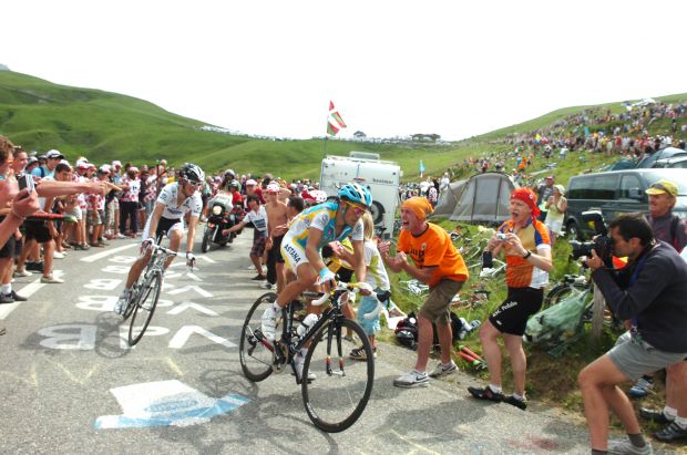 The pass has been used in the Tour de France since 1969 and has been crossed an amazing 23 times in those 43 years. The climb is classified hors-catégorie, which is the highest rating given. Here is Mr. Beefsteak, Alberto Contador, hauling Andy Schleck up the col a couple of years ago.