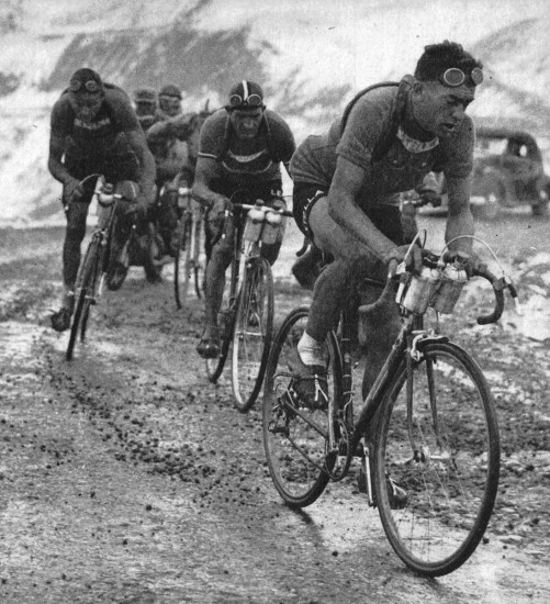 The Croix de Fer was first used in the Tour de France in 1947 and has made a modest 15 appearances since then. Here are French and Italian heroes (especially Bartali, who was a real war hero), Louison Bobet and Gino Bartali on the climb in 1948, before they thought to pave the roads, it looks like.