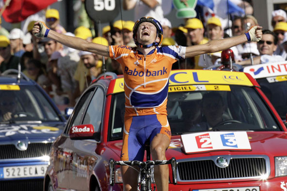 This little pass has only been used once in the Tour de France, I think, but it was a memorable day. Stage 16 of the 2006 TdF was the day Floyd Landis lost the Yellow Jersey to Michael Rasmussen (man of impossibly long arms – photo below), only to win it back in incredible style the following day (an epic solo attack). Of course, that’s not the story – Landis was quickly found to have been juiced up during that stage and was later stripped of his overall win and suspended from the sport for two years, all the while proclaiming his innocence, taking donations to fight his case in court, and writing a book about it, which is an interesting read now that the good bits are known to be lies (he has since spilled the beans).