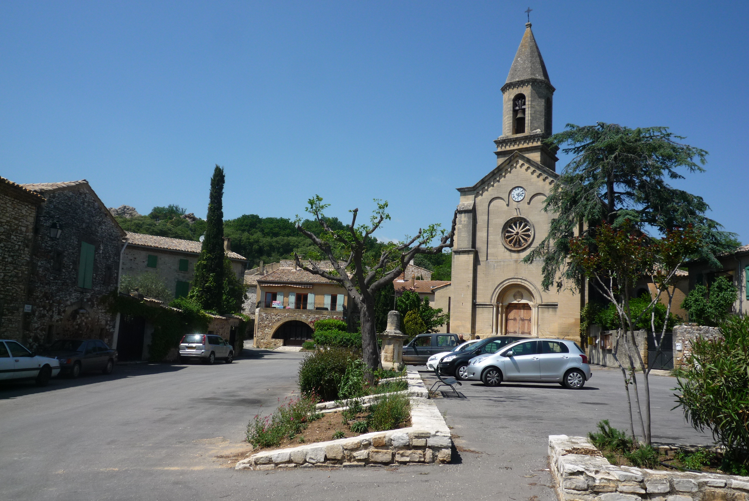 This is the village square of La Capelle-et Masmolène.
