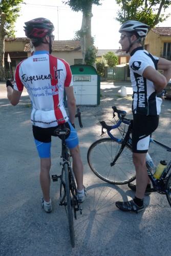 On the 3rd day of my 100km/day self-inflicted training camp, Erik and John whipped up a little route to test our legs and their memories (they’d done it before). Here they are discussing which way to go out of the parking lot. ‘Left’ was the agreed upon direction.