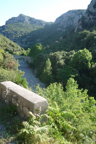 We were riding into the Cévennes, a mountain range that is part of the Massif Central, and virtually right on my doorstep (I really need a car). It’s pretty and rural and filled with little roads you can have all to yourself. This is a bridge for Tootlepedal, but it was a photo taken on the go, so it’s more like a Where’s Waldo game, I’m afraid.