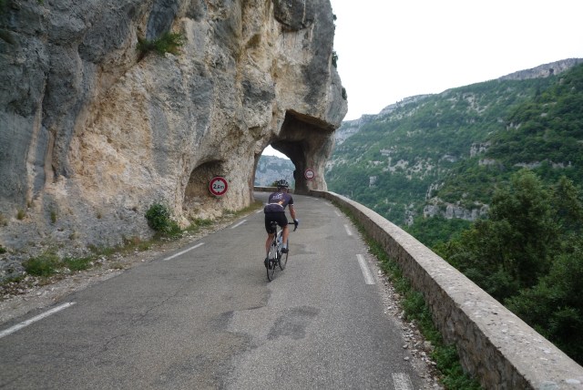 The Gorges de la Nesque climb starts life just a few kilometers out of Bédoin, so parking here makes good sense, if you want a warm up (not to mention the use of the above facilities..). It’s a long, easy climb that you can really get some speed up on. I don’t think you ever get over 5% or 6% the whole way up, but after you’re done you have climbed 500 meters or so. It’s a pretty and dramatic ride, as well.