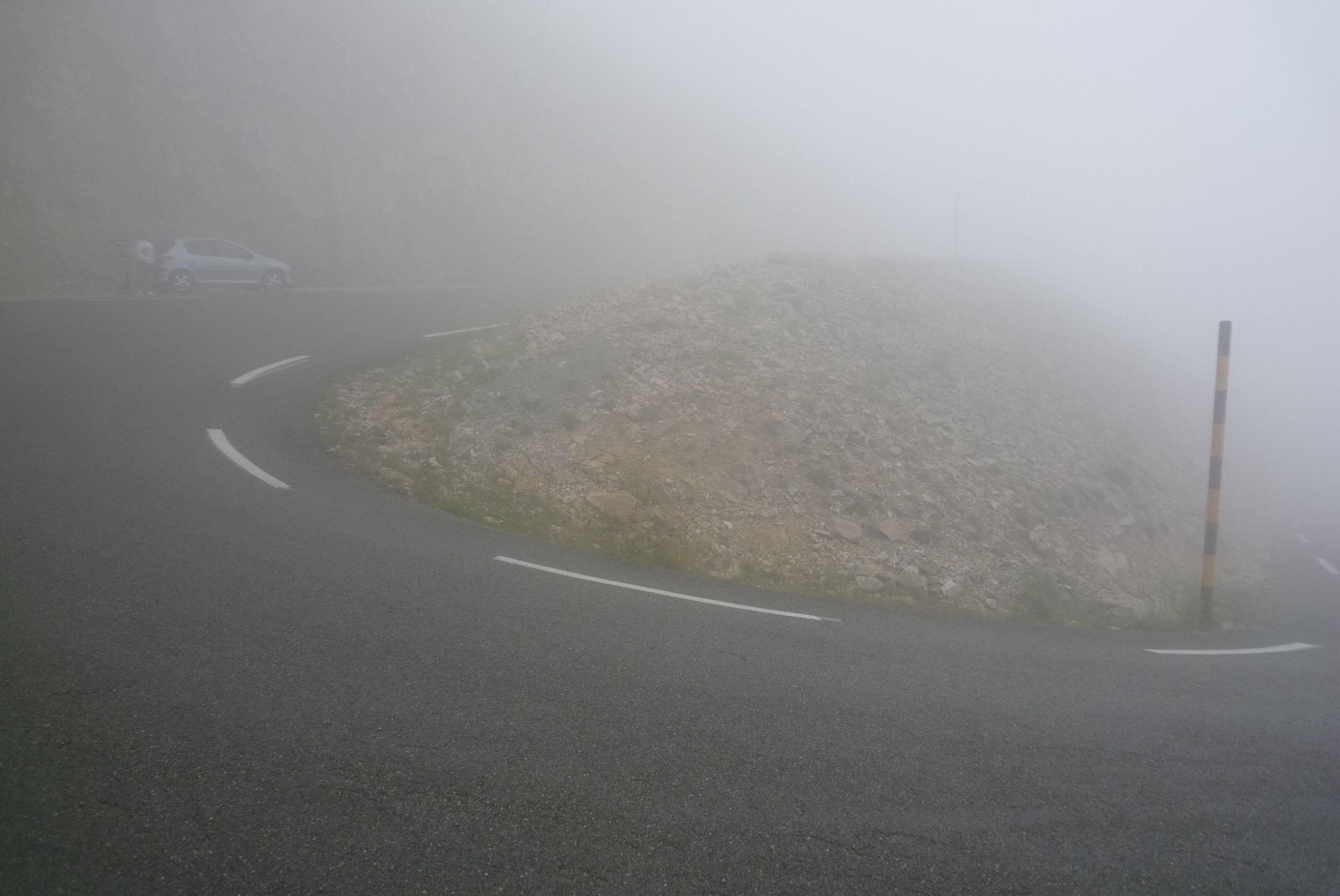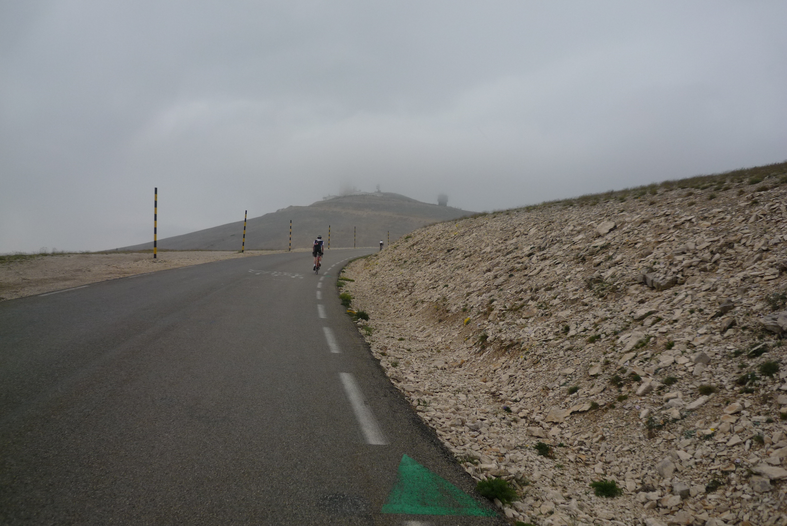 And what our descent looked like for the first few kilometers. It was a windy and wet affair and John’s knuckles weren’t nearly welded to his handlebars by the time he reached Malaucène (I found the fun side in it somehow).