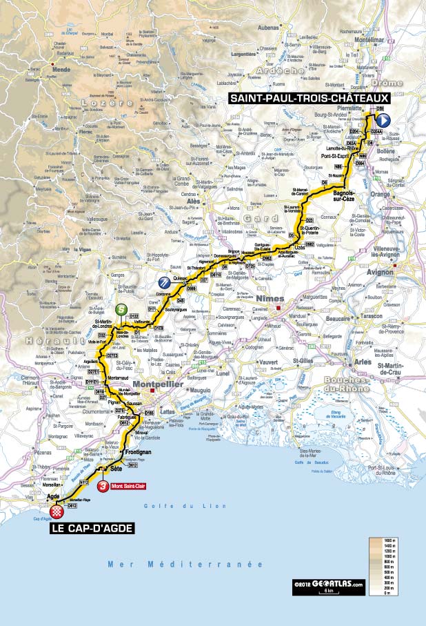 But there’s a catch! You see the little red number 3 in the map? This is a fearsome tiny climb (as loyal reader, Roan, will attest to) up Mont Saint Clair in the pretty town of Sète.