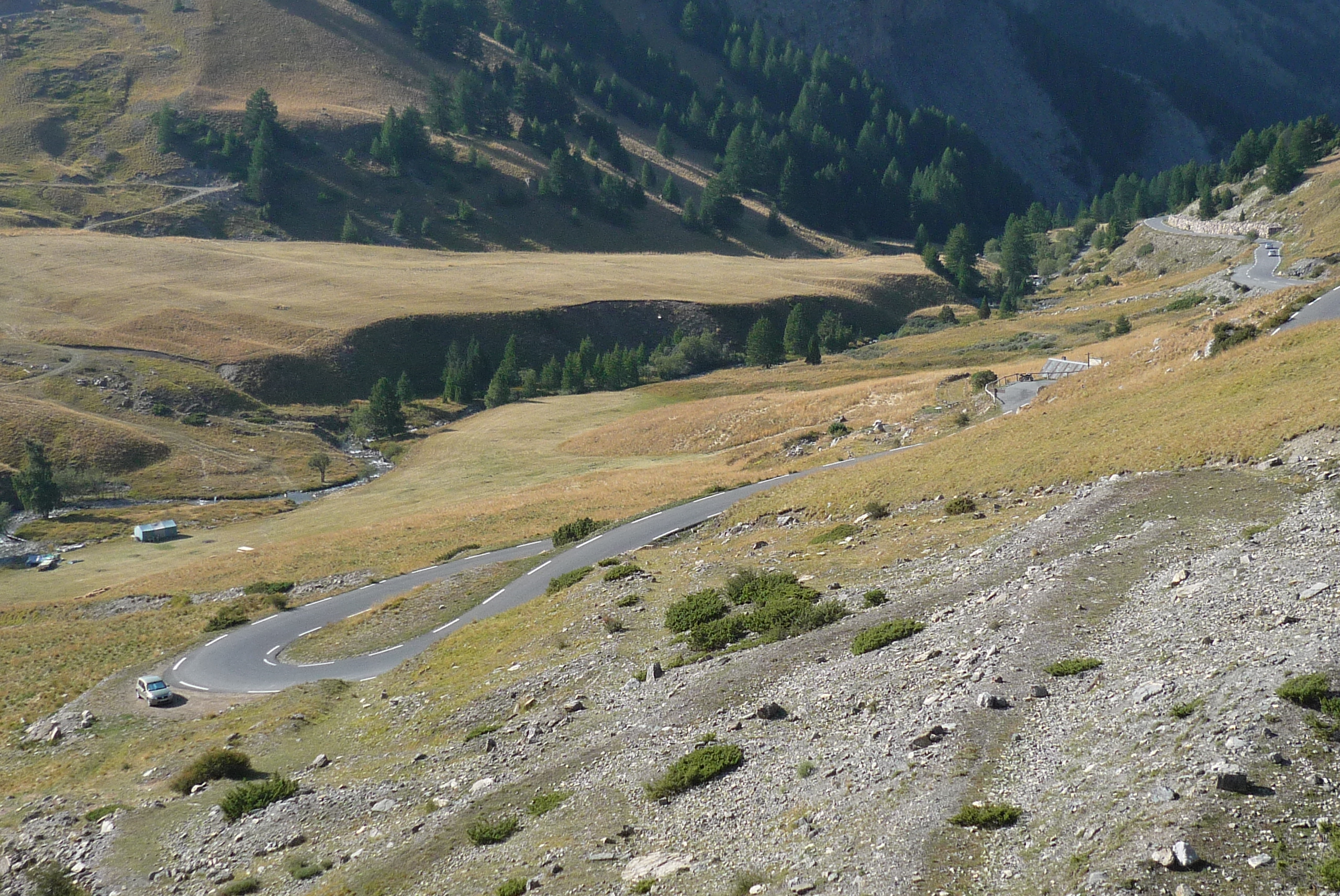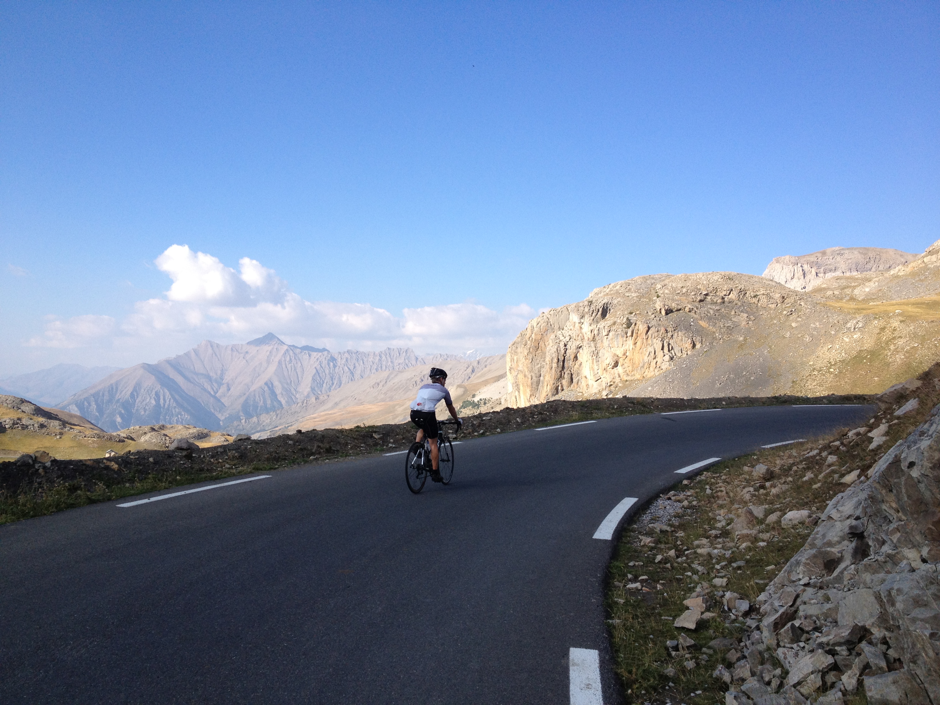 See, the mountain pass (Col de la Bonette) is not the highest paved through-road in Europe. That distinction goes to that road-to-nowhere (it’s a loop) up there (Cime de la Bonette). Before the Tour de France made it’s first ascension of Bonette in 1961, this loop was built so that it could out-high its rivals elsewhere in France and Italy (e.g. the Stelvio, at 2757m) as the highest road in a Grand Tour. I wish they hadn’t because that last bit was crushingly steep!