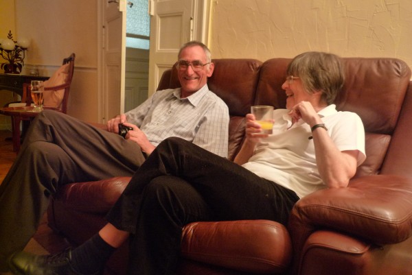 Here are the TPs in the sitting room before dinner. That’s Mrs. Tootlepedal’s face, for those, like me, who’ve been wondering what it looked like (she’s usually bending over in the garden, or riding away into the distance, in TP’s blog).